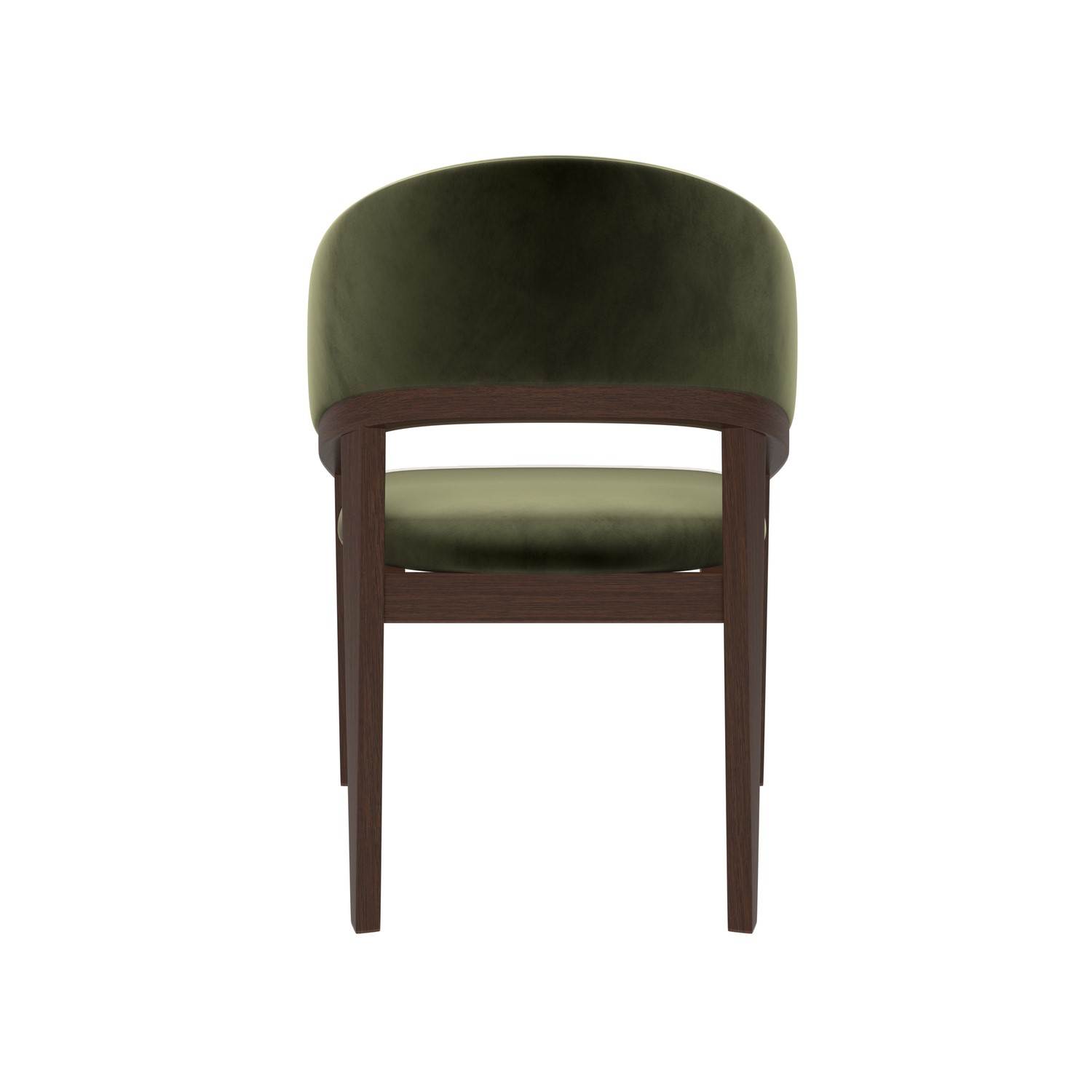 4 x Walnut & Olive Green Velvet Curved Dining Chairs - Owen