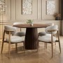Elegant & Functional Dining Set: The Walnut Round Dining Table Set with Kori Upholstered Chairs combines sophisticated craftsmanship with everyday practicality, making it an ideal choice for any modern or classic dining space.