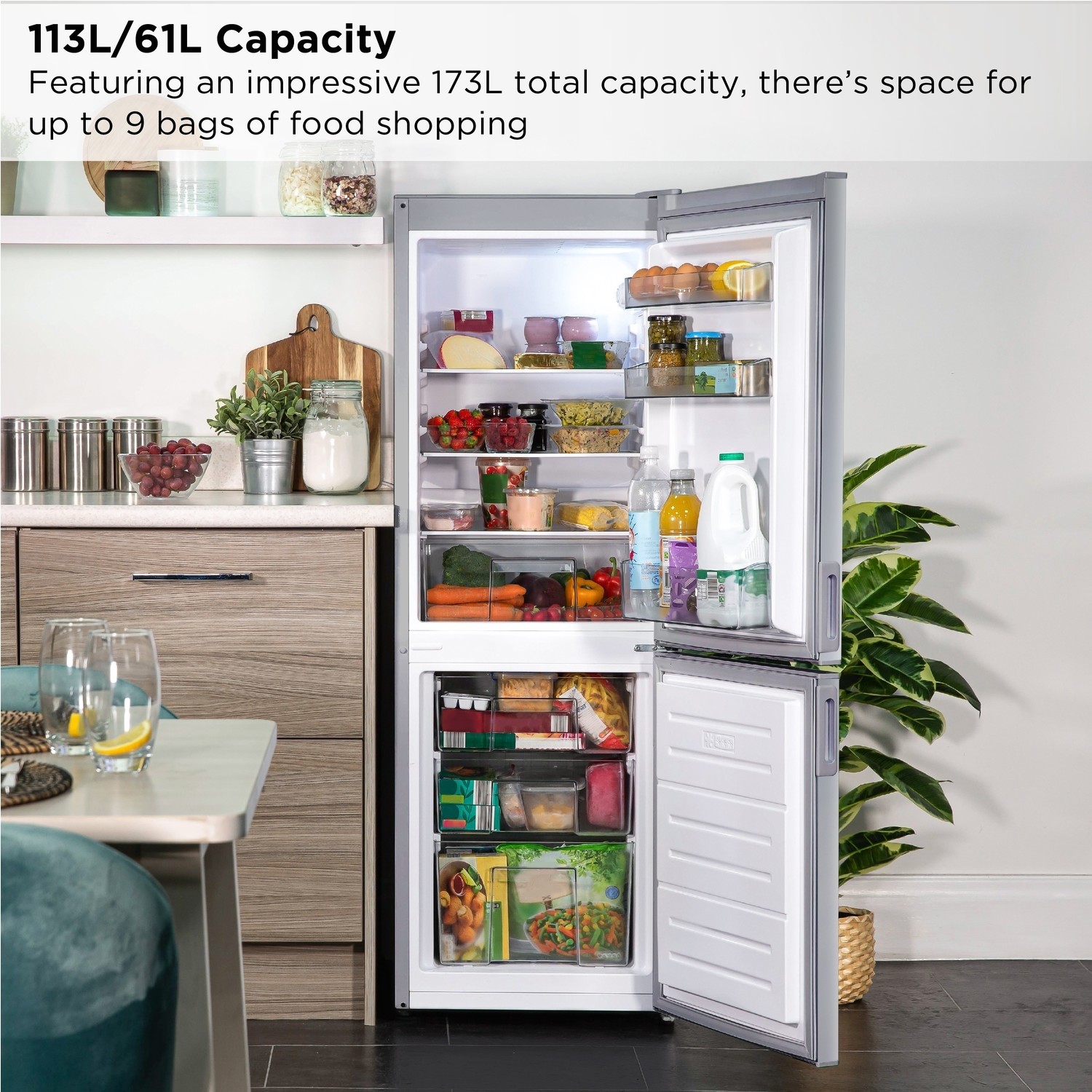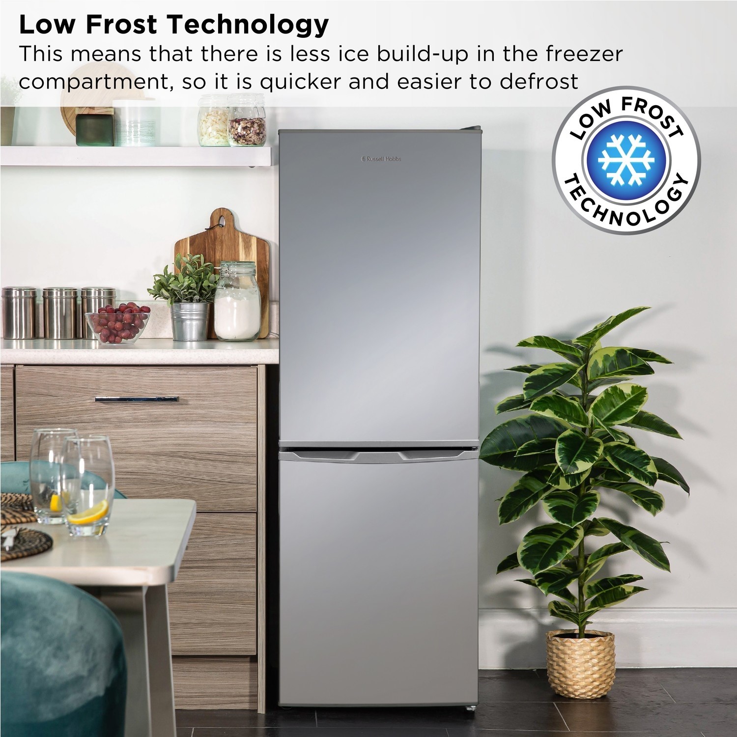 This Russell Hobbs Low Frost Fridge Freezer is functional and contemporary in a simple silver design. The fridge freezer has an impressive 173L capacity split into 113L of fridge space and 61L of freezer space. Made up of 3 glass shelves, 3 door racks and a crisper compartment, the fridge space offers plenty of room for your fresh produce. Plus, the 61L freezer compartment is a great space to stock up on your favourite frozen treats and your batch-cooked family favourites.