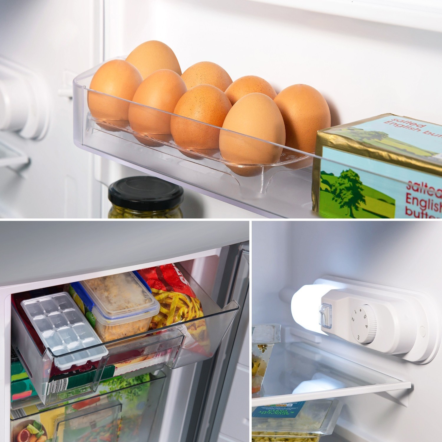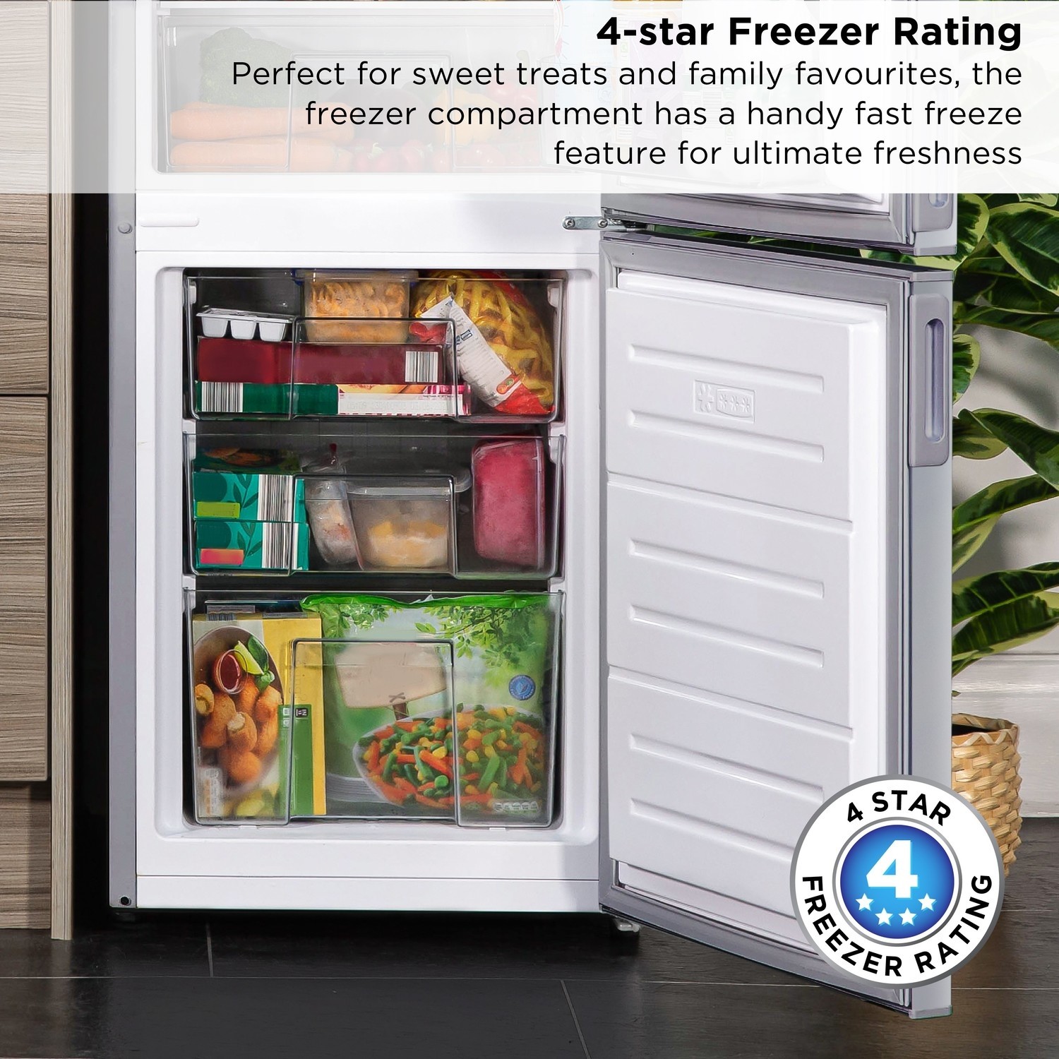 The adjustable thermostat ensures that your fridge freezer is always set to the perfect temperature. Even better, the appliance has an A+/F energy rating which means it’s super eco-friendly. Not only does the fridge freezer help cut your energy bills, but the freezer compartment offers you the space to stock up on more pocket-friendly frozen food.