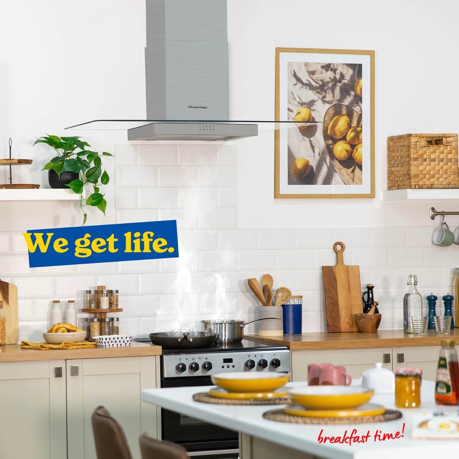 Remove steam and cooking odours from your kitchen with this sleek stainless steel and tempered glass Russell Hobbs cooker hood. Designed to be functional and efficient, this powerful cooker hood can clear up to 440m³ air per hour, making it perfect for medium-sized kitchens. Plus, the cooker hood fits perfectly over a large hob at 90cm wide.