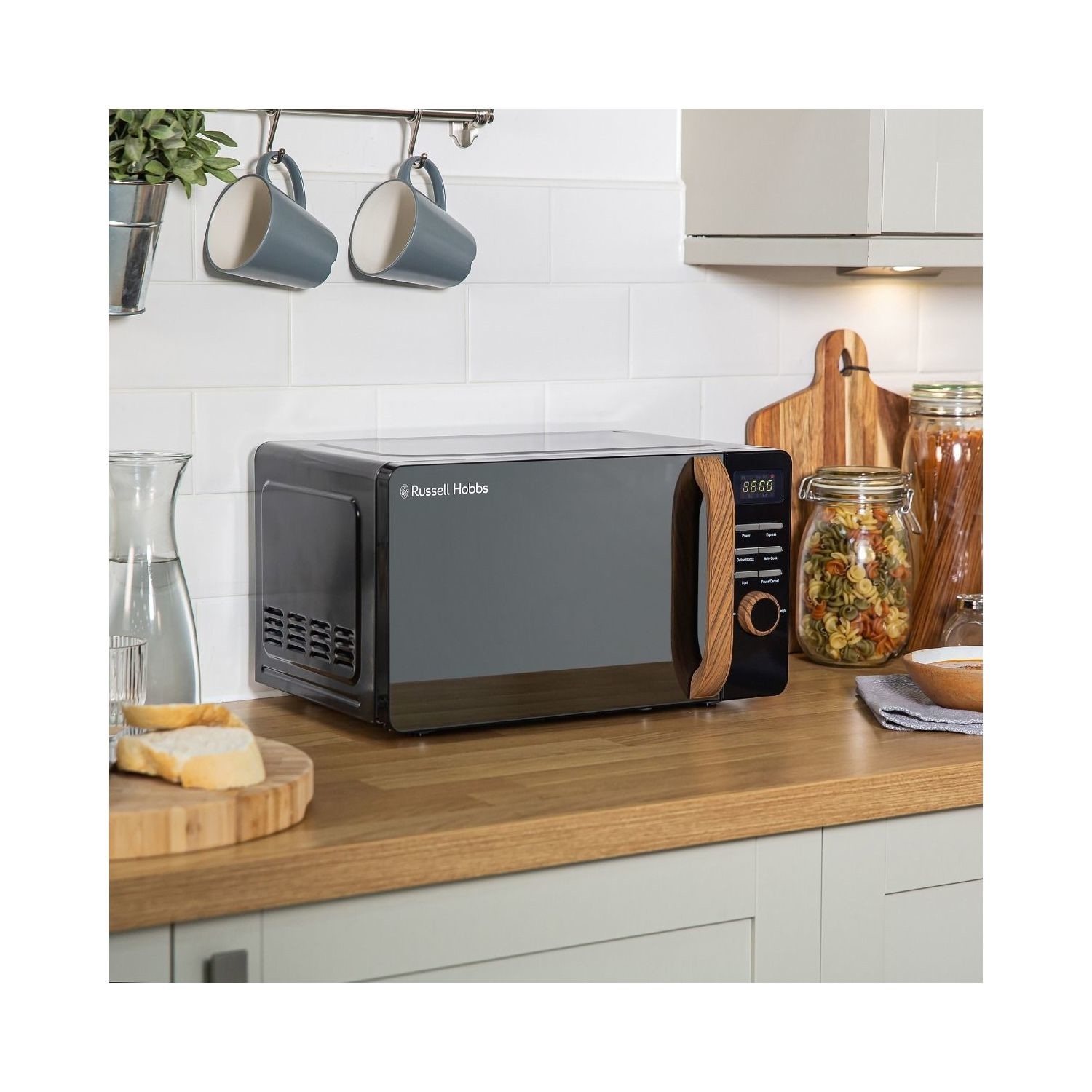 The RHMD714 combines the convenience of a stylish and compact microwave with the added functionality of a digital oven with Scandinavian inspired wooden effect effect handle and dial. This means your oven will compliment any space in your kitchen, as well as facilitating a variety of cooking needs.