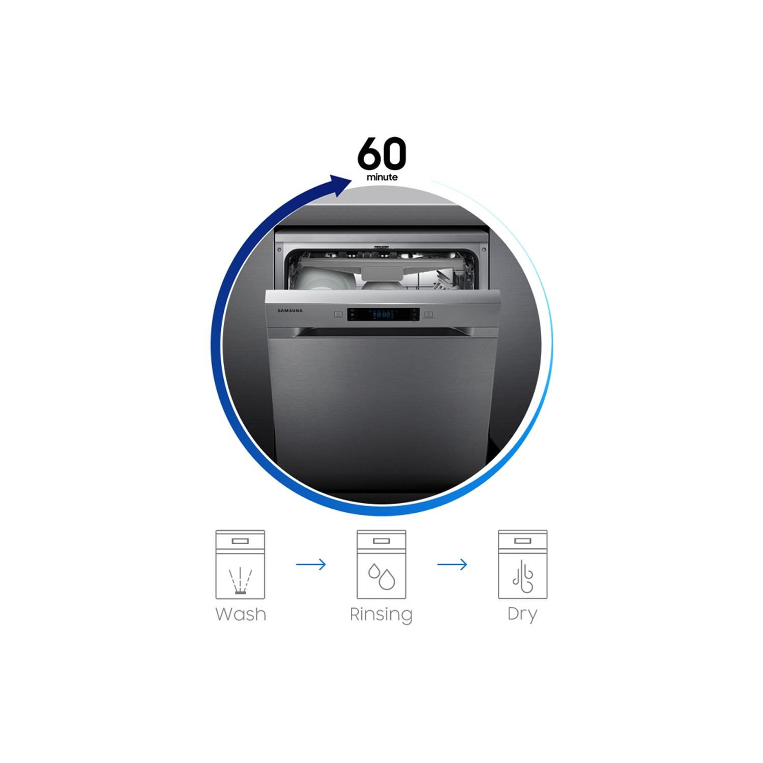 A 60 minute Express Wash option gets your dishes clean and dry much faster. It's ideal for smaller loads of lightly soiled items that don't need really intensive cleaning, such as cups, cutlery and dinner plates, as it will put them through a complete washing and drying cycle within just 60 min.