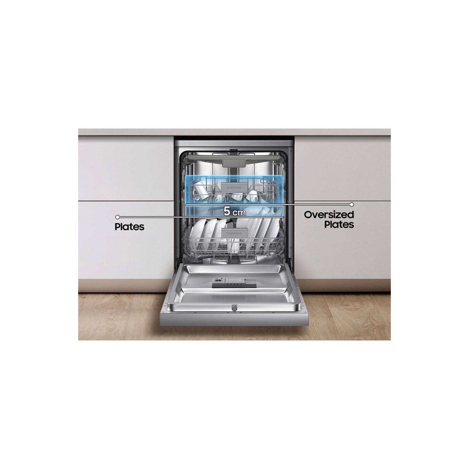 A Flexible Interior Space is height adjustable, so the upper rack can be quickly raised up or down by an extra 5 cm with one touch of a trigger. By creating more space in the lower rack you can fit in various sizes and shapes of dishes, including tall pots, wide platters and oversized plates