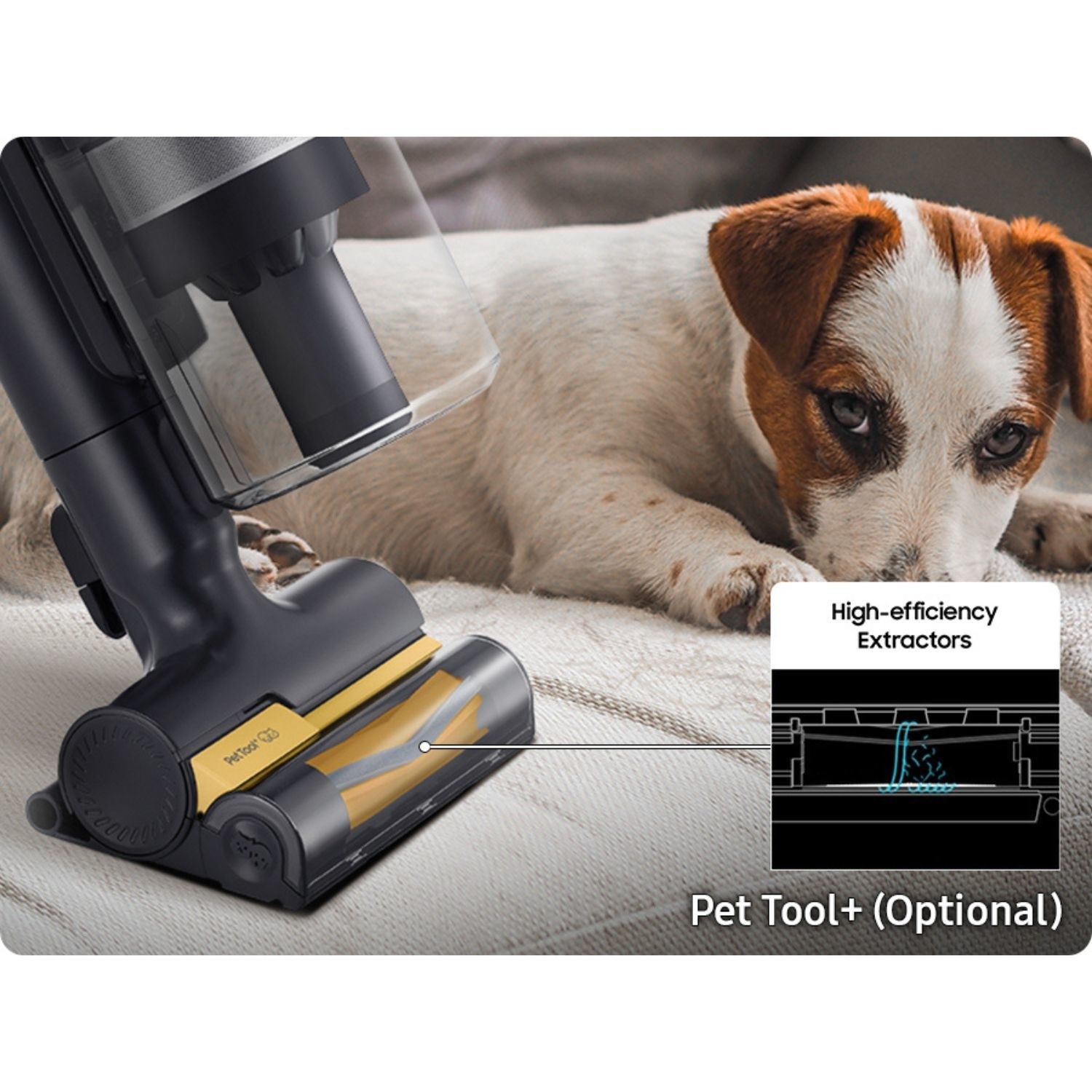 At the heart of the Samsung Jet 85 Pet is the high-performance HexaJet Motor™, engineered to generate up to 210 watts of suction power. Combined with advanced Jet Cyclone technology, it optimises airflow and minimises suction loss, ensuring consistent, powerful cleaning across all floor types.