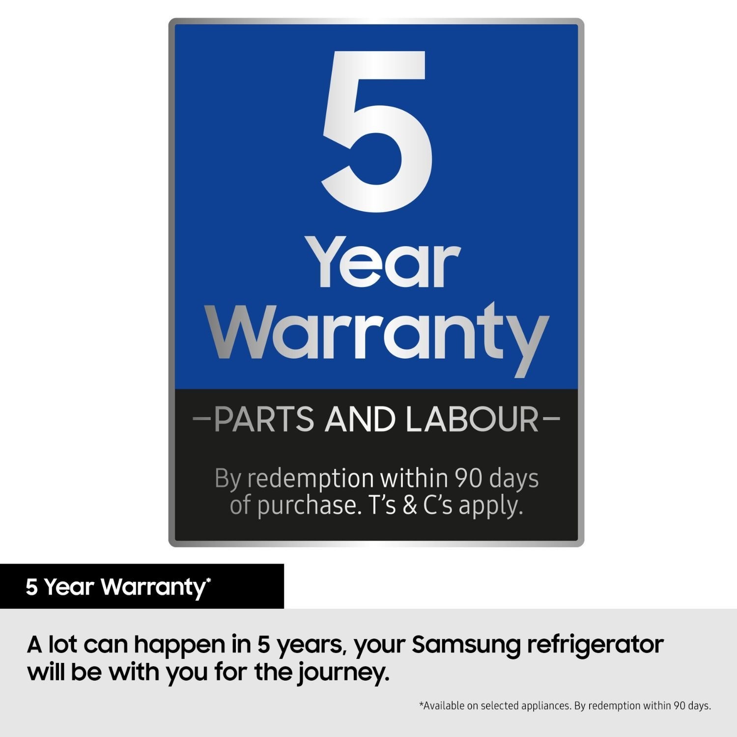 A lot can happen in 5 years. That's why selected Samsung SpaceMax™ fridge freezers not only offer lots of capacity, but also come with a 5 year warranty(1)