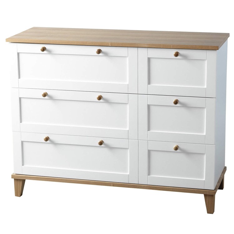 The Arcadia chest features a classic design with a twist. Giving the illusion of 6 drawers, this unit instead offers 3 spacious drawers leaving you plenty of storage space. With a fresh white painted finish and an ash effect veneer top and base, this design will suit any style of bedroom.
