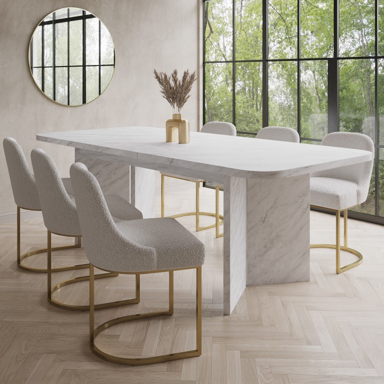 Comfortable Seating: Boucle fabric and ergonomic design ensure a cosy dining experience.