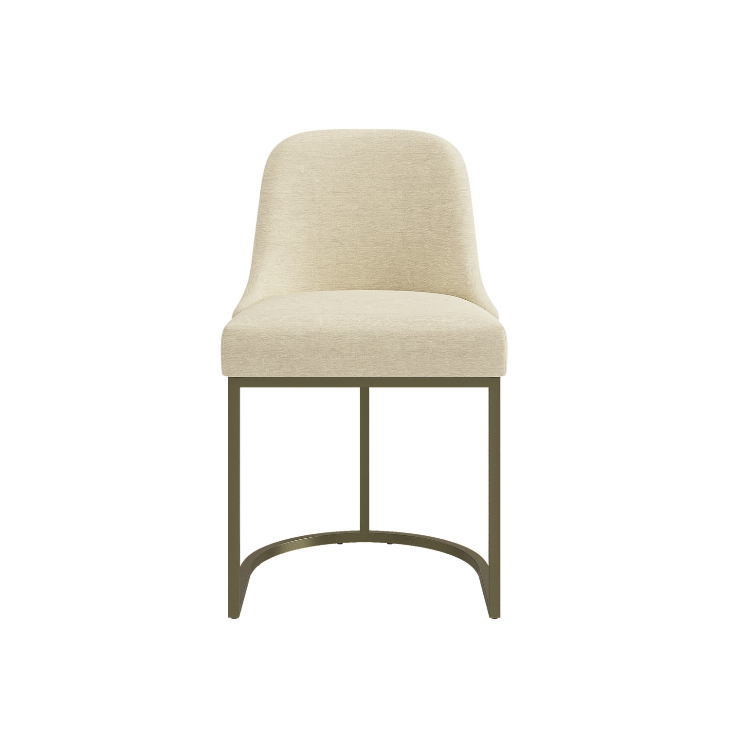 Elevate your dining space with this pair of Callie dining chairs, designed to bring modern elegance and everyday comfort into your home. The beige fabric upholstery adds a luxurious touch, while the gold metal legs provide a stylish contrast that instantly enhances your decor. Crafted with gently curved, padded seats, the chairs offer support and comfort ideal for long, relaxed meals. Whether styled with a sleek contemporary table or a more classic design, the Callie chairs deliver a refined look that completes any dining room with ease.