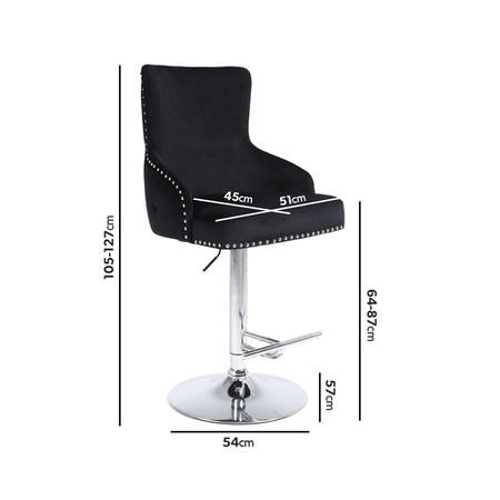 It’s easy to fall in love with the Jade Boutique black velvet bar stools. These can be adjusted between 64cm to 87cm, meaning they can be used at a multitude of heights - perfect for having your morning coffee or entertaining guests around your breakfast bar. Having friends’ round for cocktails? No problem, just adjust the stools to fit the height of your table. The opulent black velvet is accompanied by a chrome base and stud detailing. A full buttoned back offers not only comfort but a stylish feel.