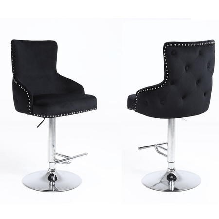 2 x Black Velvet Swivel Bar Stools - Jade Boutique
