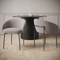 Elevate your dining or living space with this beautifully modern boucle chair, designed to balance contemporary elegance with everyday comfort. The soft, tactile boucle upholstery adds instant texture and warmth, while the curved tub silhouette creates a stylish and supportive seat that gently wraps around the body. Slim black metal legs give the chair a refined, minimalist look without compromising on stability. Perfect around a dining table, at a desk, or as an accent chair, this versatile piece blends seamlessly into a wide range of décor styles—from Scandi calm to modern luxe.
