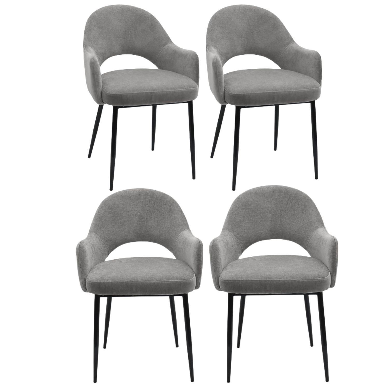 These set of 4 Colbie dining chairs offer versatility in the home, suiting a dining room setting or as occasion chairs for bedrooms and more. Sophisticated in their design, they can provide the finishing touch you've been striving for. Upholstered in a textured chenille grey fabric and finished off with sleek black metal legs, these chairs offer a timeless design and comfortable dining experience.