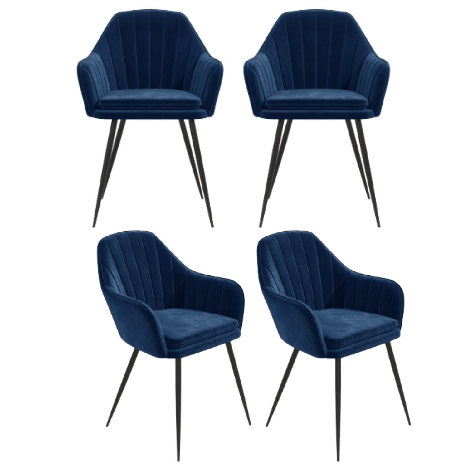 Complete your dining room with a set of 4 Logan dining chairs. With an on trend design, the styling is effortless. They feature curved chair backs with stunning black metal chair legs. Finished in navy blue velvet and black, the two tone design brings a fresh look to your space with a modern touch. Crafted from navy blue velvet & black metal they are highly durable and hardwearing, easily withstanding the test of time in a busy family dining room. These chairs are supplied in pairs, making it easy for you to coordinate them with the dining table of your choice.