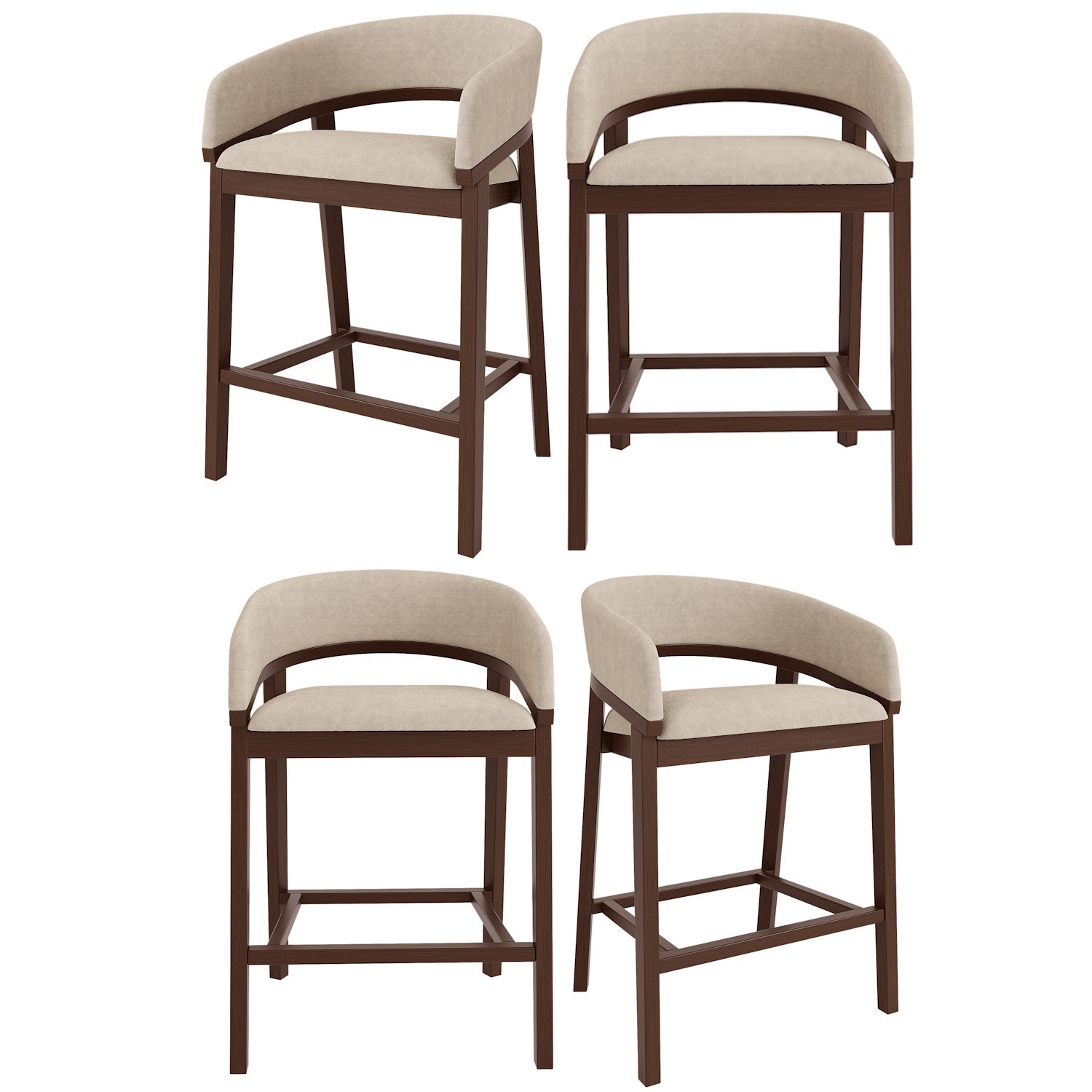 Upgrade your kitchen space with this contemporary curved kitchen stools. Designed with a cut-out backrest and gently curved armrests, it blends modern sophistication with everyday comfort. The soft beige fabric and plush padding create an inviting seat, whether you're enjoying a quick breakfast or entertaining guests. Supported by a sturdy solid wood frame in a warm walnut-stained finish, these stools not only offers a refined aesthetic but also delivers exceptional durability for daily use.