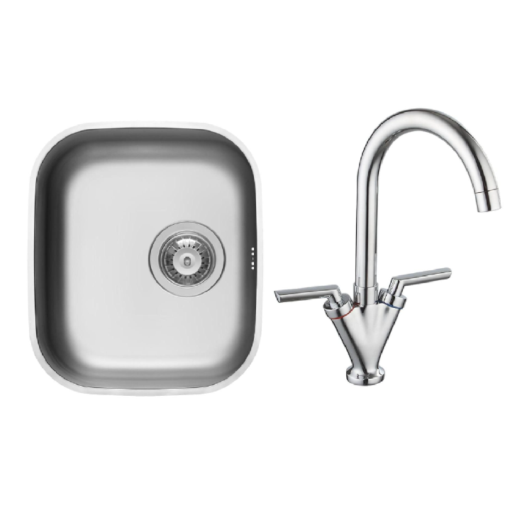 Upgrade your kitchen with the Essence Stainless Steel Sink and Hector Mixer Tap Pack, a stylish and practical all-in-one solution designed for modern living. Perfect for compact kitchens, utility rooms or contemporary layouts, this coordinated bundle delivers everyday functionality with a clean, streamlined finish. The single-bowl stainless steel sink is crafted for durability and ease of use, resisting rust and daily wear while remaining simple to wipe clean. Its undermount installation creates a sleek, seamless look beneath your worktop, helping keep surfaces tidy and enhancing the overall modern aesthetic of your kitchen. Paired with the sink is the Hector chrome mixer tap, designed for smooth performance and reliable control. The swivel spout offers added reach and flexibility, making washing, rinsing and filling effortless, while the dual lever handles allow precise adjustment of water temperature and flow. Built with solid brass internals, the tap is made to withstand everyday use with confidence. Supplied as a complete sink and tap pack, this set saves time, effort and extra costs, giving you everything you need for a coordinated kitchen upgrade. Backed by a reassuring long-term warranty, the Essence sink and tap pack combines durability, convenience and contemporary style for a kitchen that works b