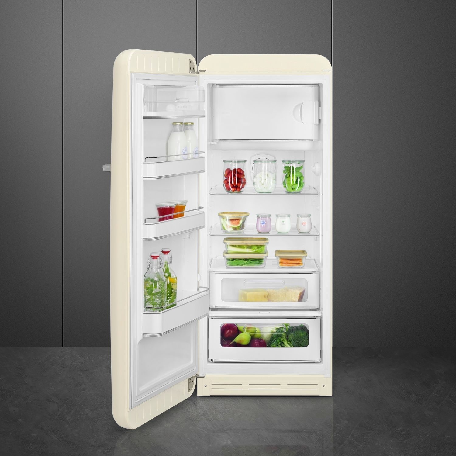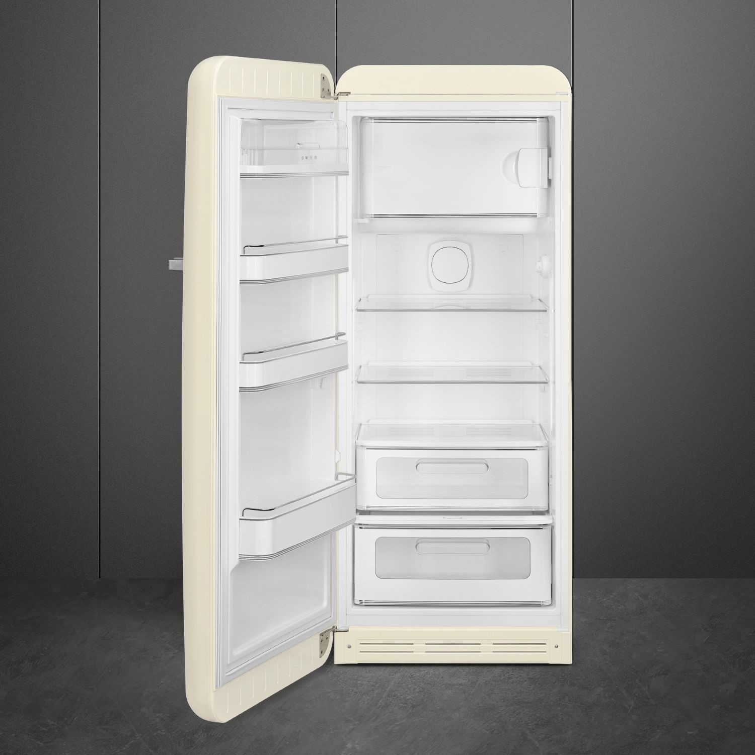 Smeg 244 Litre Fifties Style Left Hand Hinge Freestanding Fridge With Ice Box – Cream