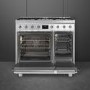 This 90cm Concert cooker includes a large oven and a smaller auxiliary oven providing all the space you could ever need for your Christmas turkey and trimmings. The main oven features Smeg's Circulaire function, which provides many benefits including no flavour transfer when cooking different food types at the same time, and there are 5 cooking level positions to choose from within the cavity. Keeping the ovens clean is simple thanks to their easy clean enamelled interiors and also the Vapour Cleaning function which helps lift off the dirt. The hob top offers 5 powerful gas burners so there is plenty of cooking space and hob options to choose from as well as heavy duty cast iron pan supports. This cooker has been crafted using 18/10 Stainless Steel to ensure long lasting results.