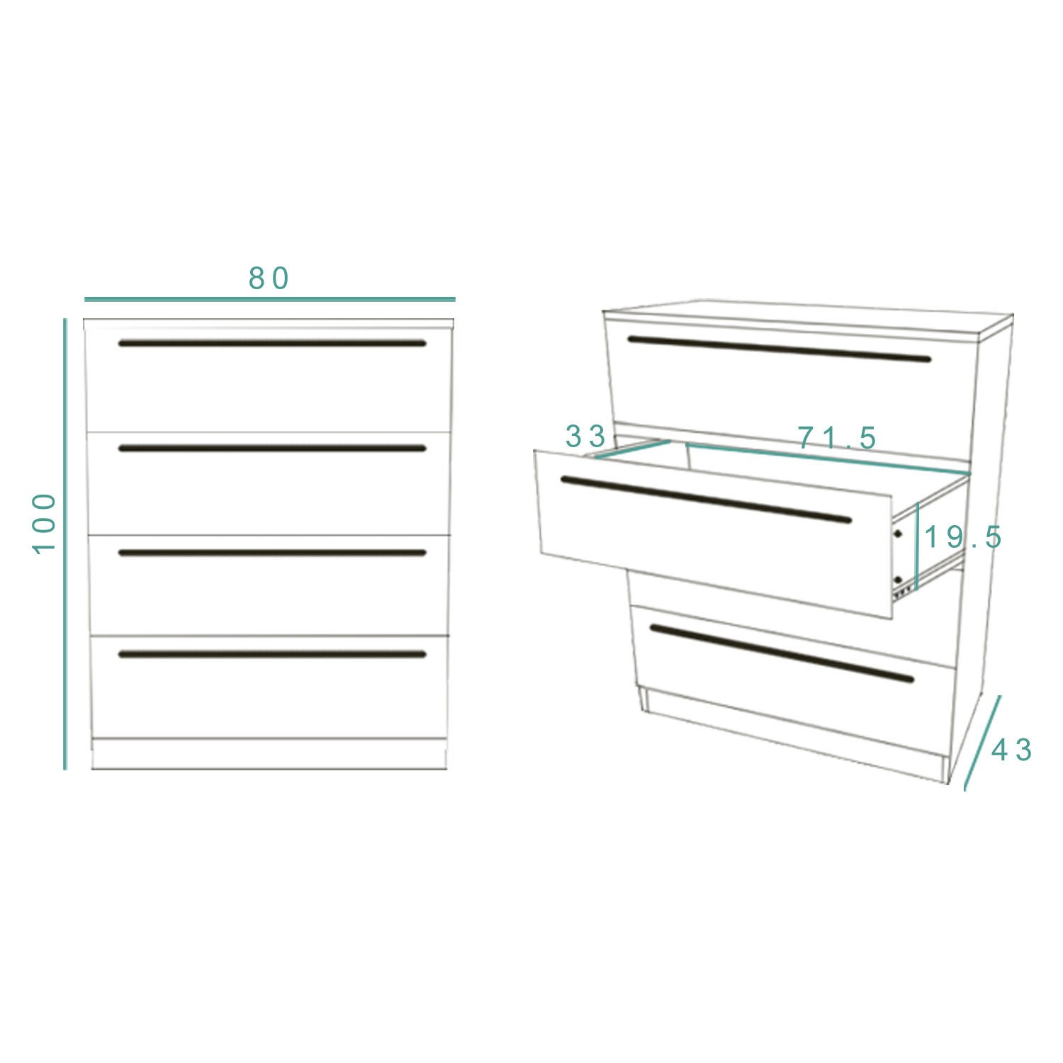 - Chest of drawers dimensions: H100 x W80 x D43 cm