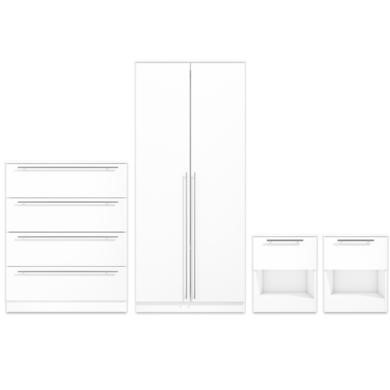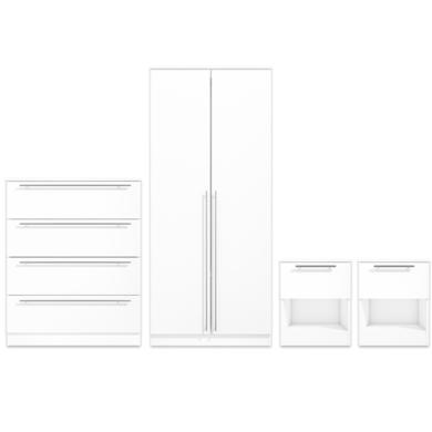- Includes: x2 Bedside tables, 1x Chest of drawers, 1x Wardrobe