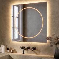 - This square mirror features a backlit light which enhances its shape and creates and ambient glow