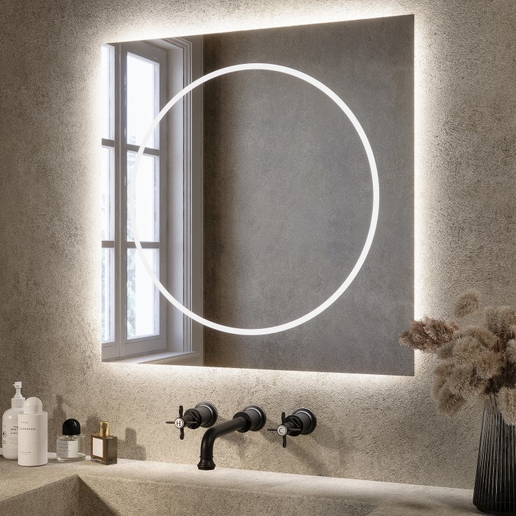 Add a sleek and modern touch to your bathroom with this 600mm square LED bathroom mirror. The combination of a frameless square shape with soft backlighting creates an elegant, ambient glow that enhances your space. Featuring a round front LED light, this mirror provides focused illumination—ideal for precision tasks like shaving or applying makeup. Both the backlit and front LED lights offer cool and warm white light colour options, allowing you to customise to your preference.