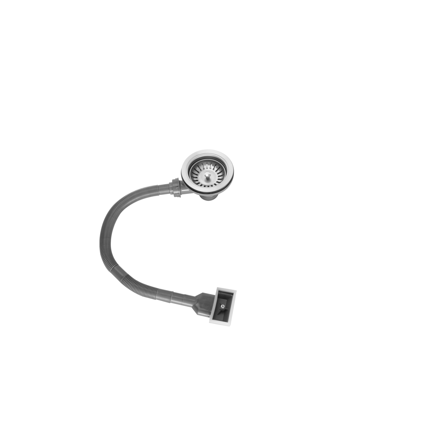 The basket strainer prevents food from entering the drain, and the square overflow protects against water spills. Its flexible pipe allows easy installation, and the system is compatible with most standard sinks for reliable kitchen use.