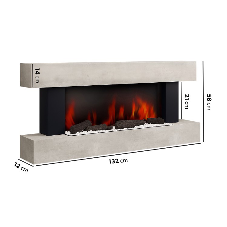 This modern wall-mounted fire is constructed with a modern stone effect surround, features two integrated LED downlights and three realistic LED flame settings to add to your room's ambience. In addition, it comes with an accompanying remote control for ease of use, and you can enjoy the ambience of the flickering flames and lights - without the heat. With a light-up, open front fuel bed including logs or pebbles, you can mix and match your fuel bed's layout. Heat is emitted from vents underneath the top panel of the fire, allowing you to install a TV above.