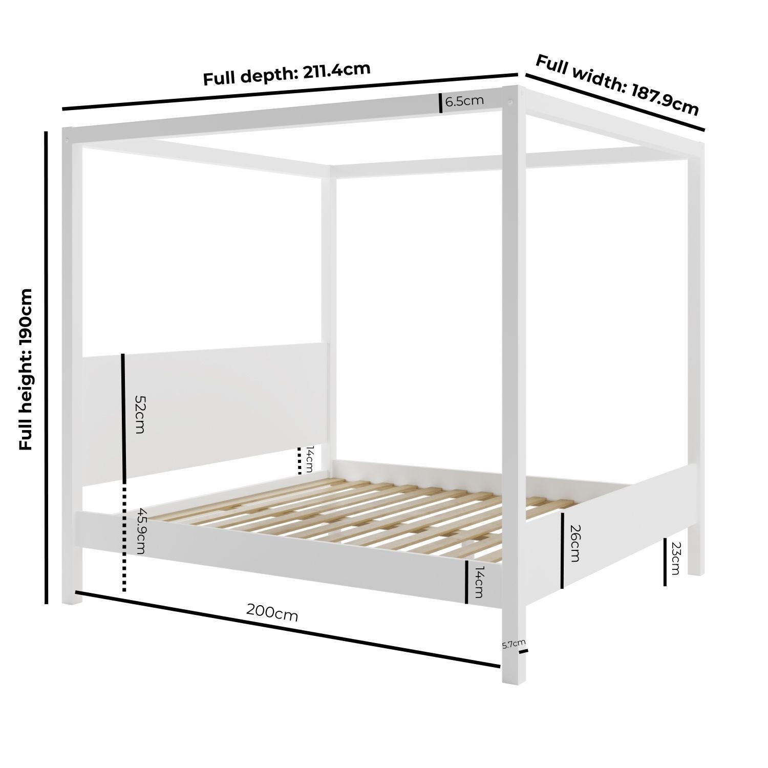 Contemporary Four-Poster Design: The classic four-poster design is updated with a fresh white finish, making it a perfect statement piece for modern bedrooms.