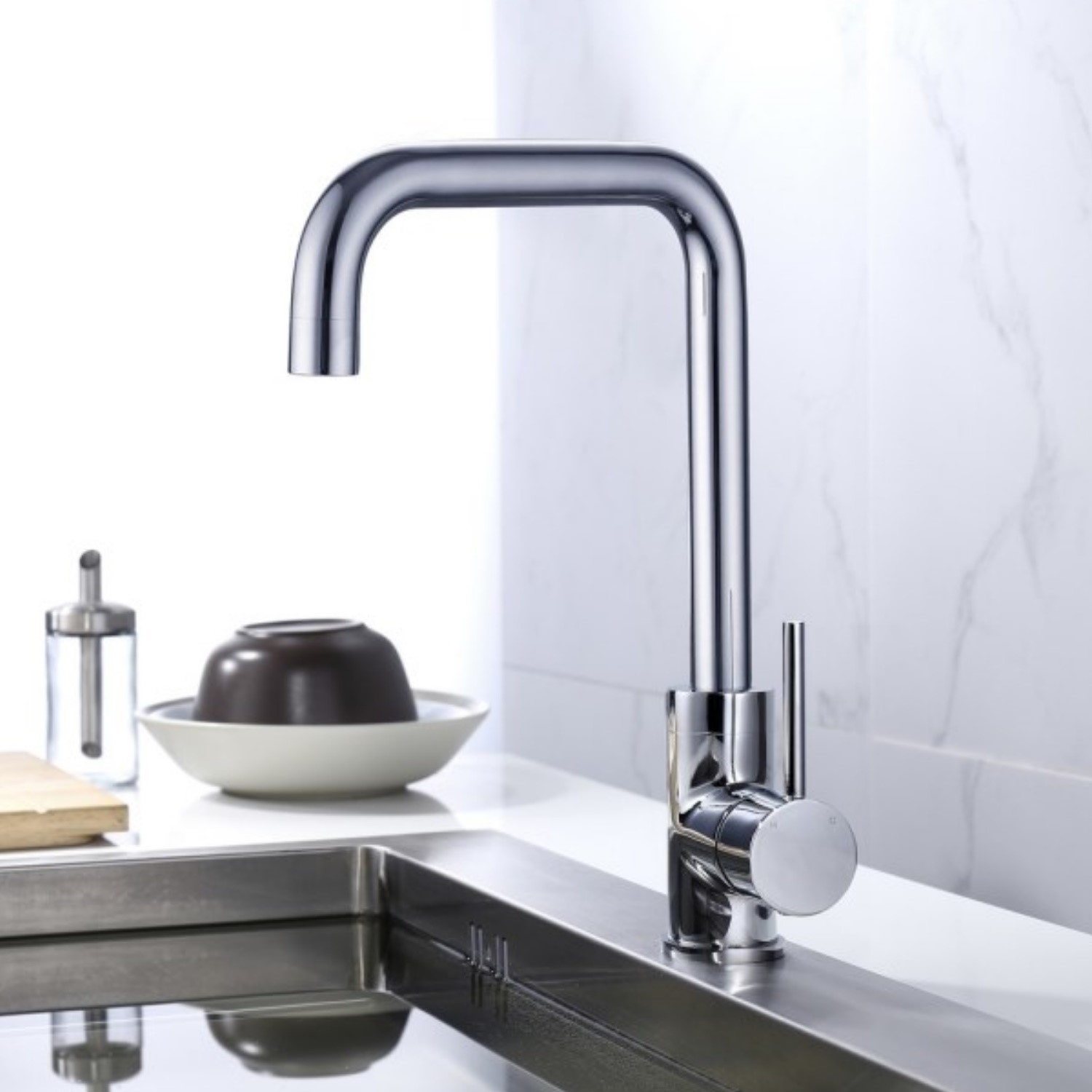 A modern single lever monobloc mixer from Enza featuring a stunning minimalist design and is finished in a beautiful polished chrome. This tap offers a luxury look with a sleek design, perfect for any modern home. This tap comes with a 10 year guarantee for your peace of mind.