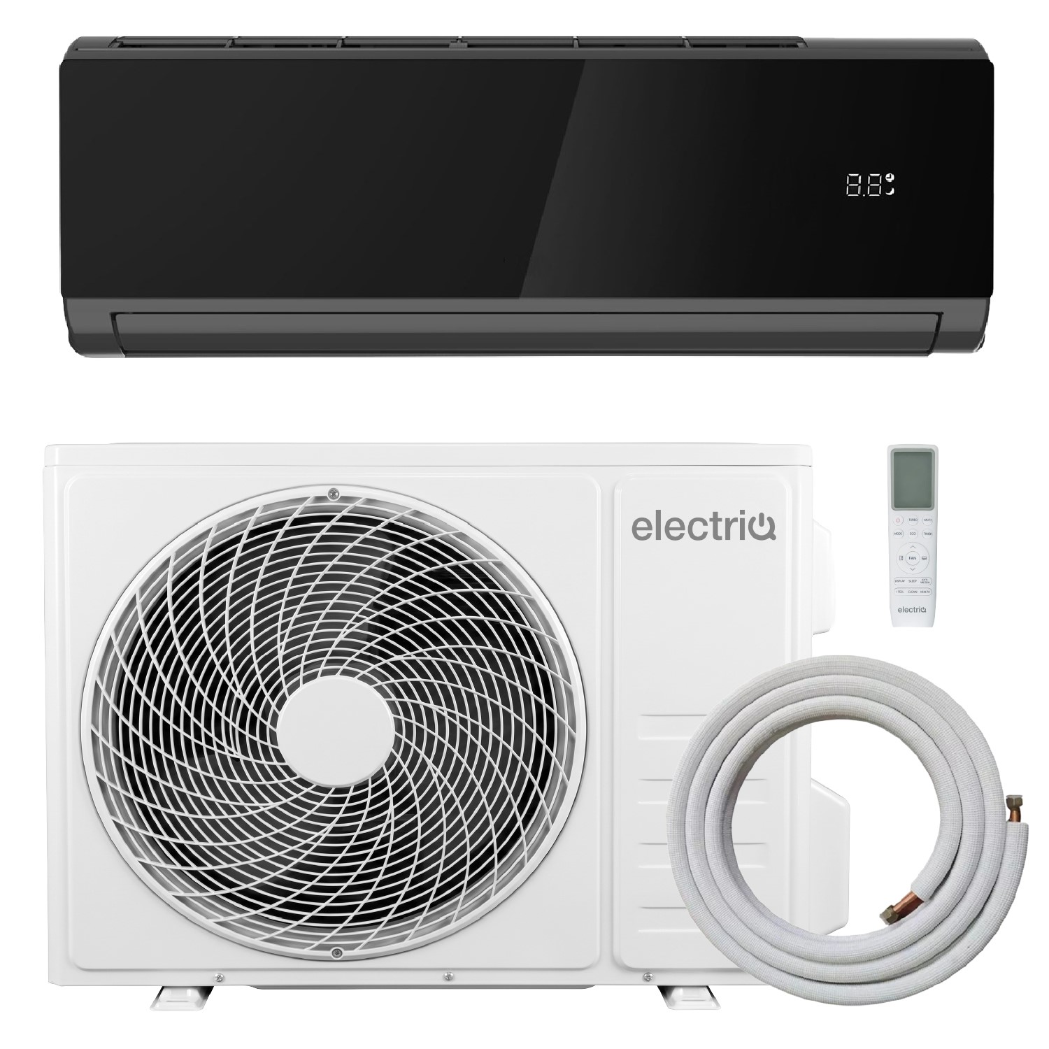 Our units are designed to reduce the installation time. The indoor and outdoor units are pre-gassed and sealed and they come with a pre-flared pipekit enabling the qualified fitter to install them easily. The indoor units should be fitted to the wall using the mounting plate supplied in the box. The condenser should be fixed on the ground or wall-mounted on the outside of the wall with the optional wall-mounting bracket. The unit is supplied with a 5-metre copper pipe that will reduce the need to purchase additional parts. It is also supplied with an electrical cable.