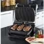 Stylish and functional: its sleek stainless-steel exterior design blends with any kitchen décor, while its die-cast aluminium cooking plates and drip tray are dishwasher safe.