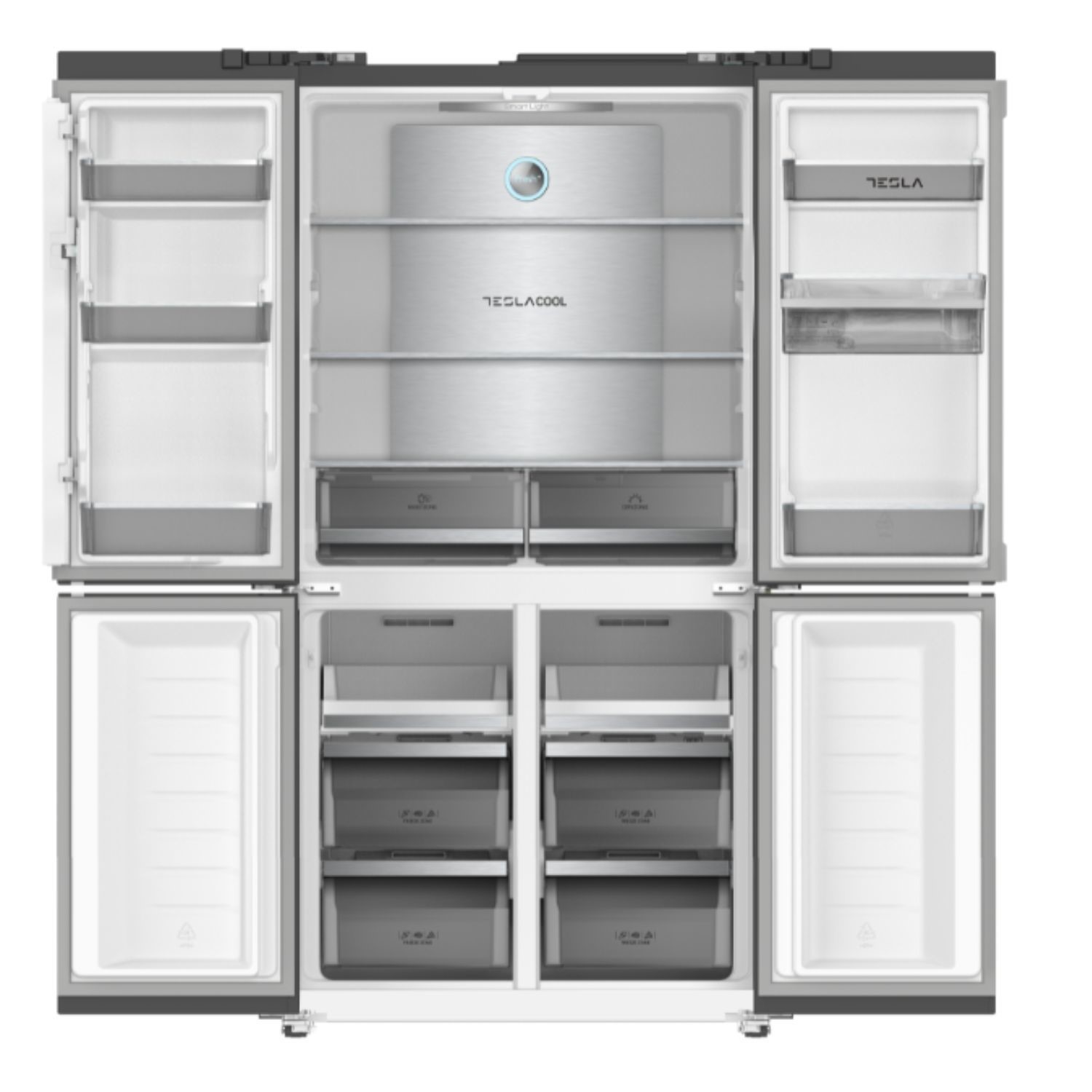 From the iconic Tesla brand, the new range of “TeslaCool” brings a premium range of refrigeration. With a total capacity of 563L split 359L fridge space and 204L freezer space, this appliance gives you ample storage for all your food essentials. The Four doors give you easy access to all your items. Loading and accessing your stored items becomes effortless. With Total No Frost, say goodbye to the tedious task of defrosting and with the quiet inverter compressor, look forward to efficient cooling and a quieter life. The sleek handleless design and its premium features, will enable this appliance to be a standout centrepiece in your kitchen