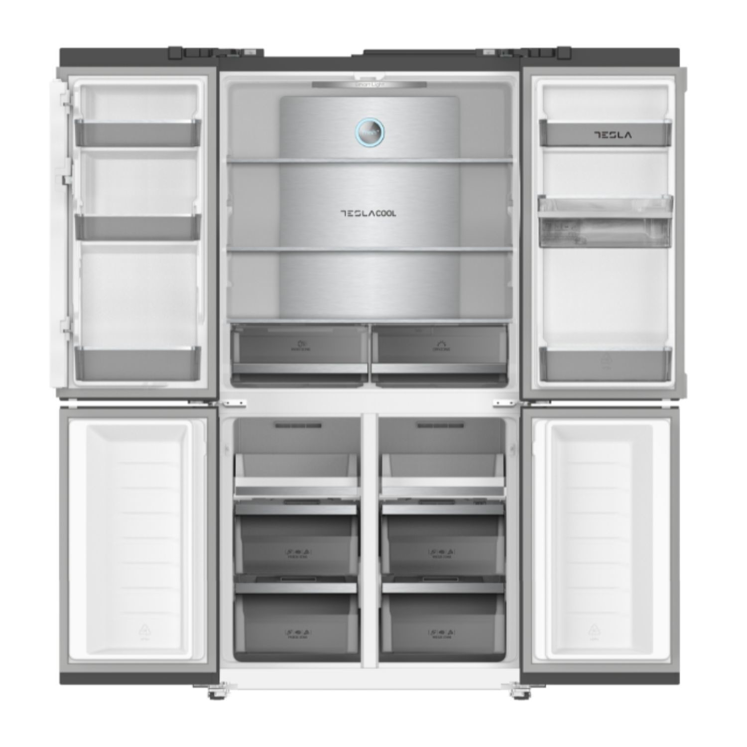 From the iconic Tesla brand, the new range of “TeslaCool” brings a premium range of refrigeration. With a total capacity of 563L split 359L fridge space and 204L freezer space, this appliance gives you ample storage for all your food essentials. The Four doors give you easy access to all your items. Loading and accessing your stored items becomes effortless. With Total No Frost, say goodbye to the tedious task of defrosting and with the quiet inverter compressor, look forward to efficient cooling and a quieter life. The sleek handleless design and its premium features, will enable this appliance to be a standout centrepiece in your kitchen