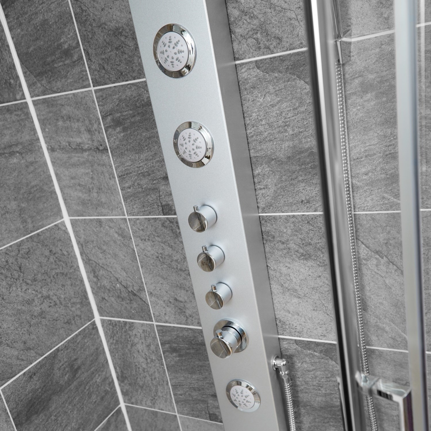 The contemporary design of the EcoWave Thermostatic Shower Tower Panel will compliment most styles of bathroom or wet room.The shower panel comes with an adjustable shower head additional handset 3 body jets and chrome thermostatic controls.