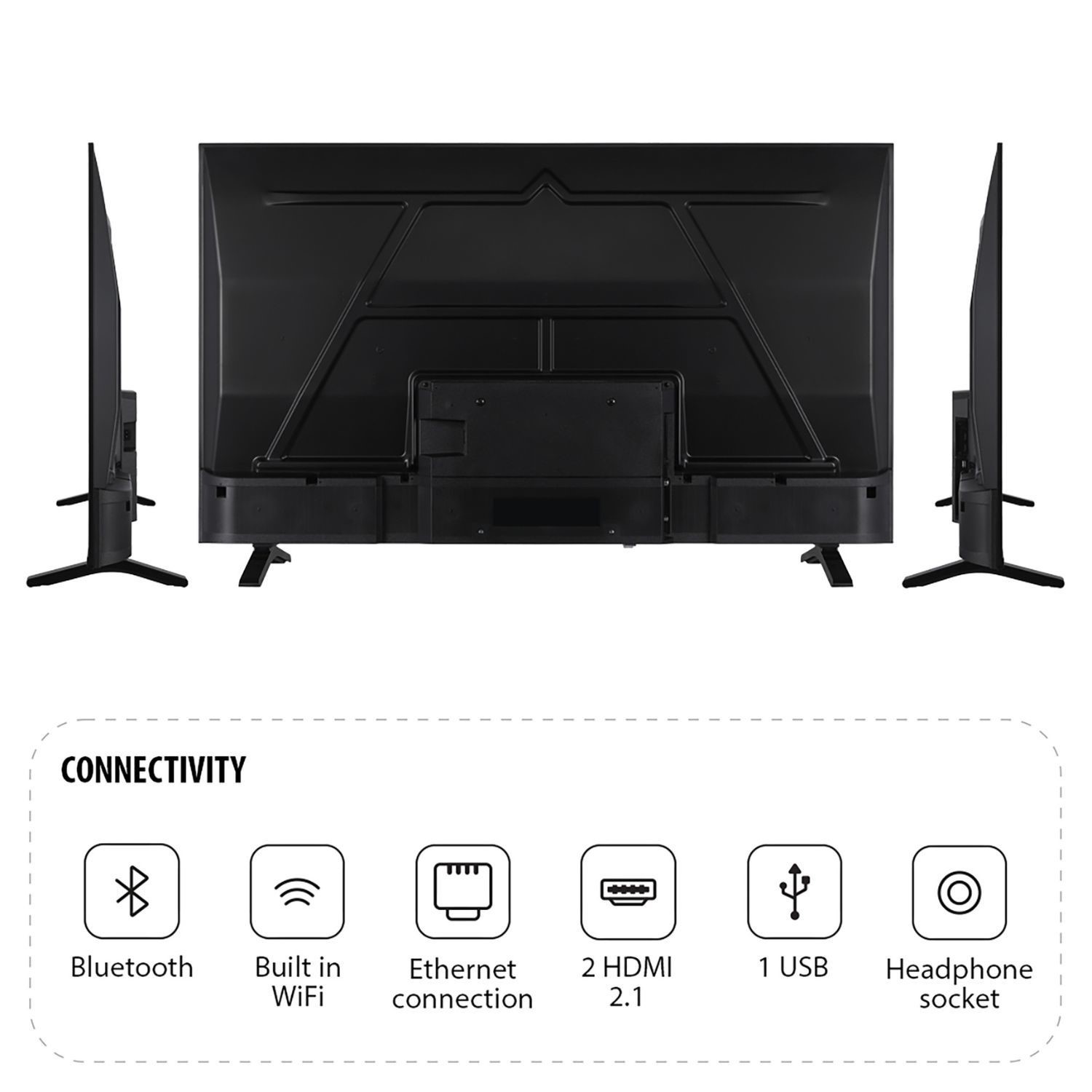 2× HDMI ports and 1× USB port for consoles, set-top boxes, streaming sticks and storage devices.