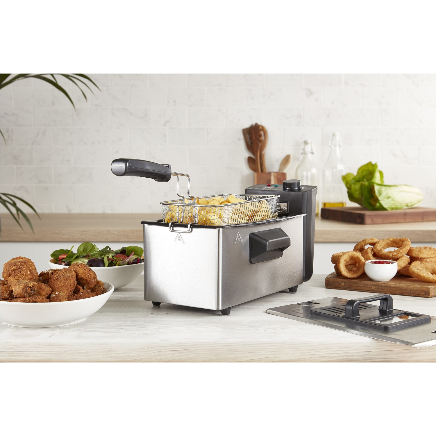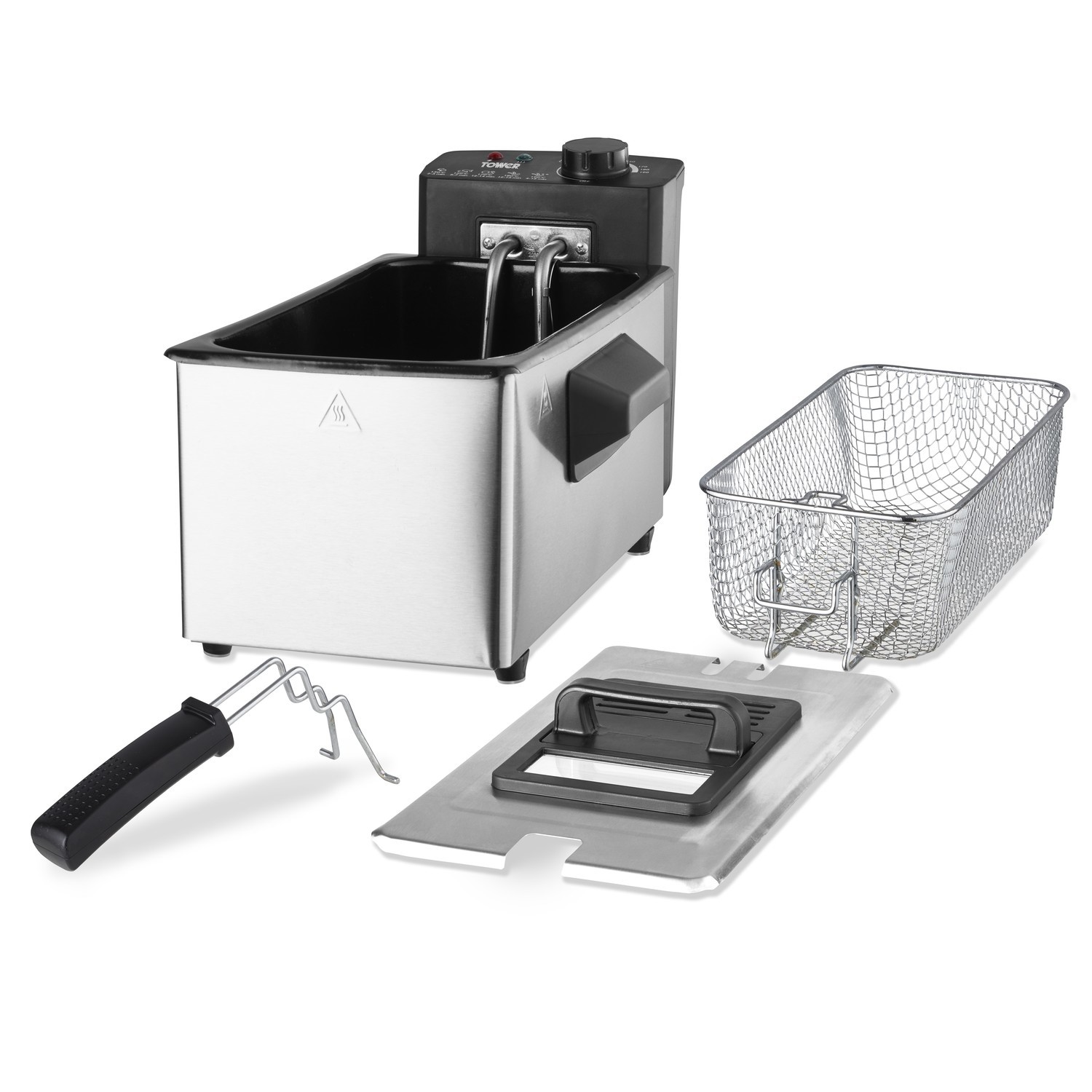 Fry up a whole host of ingredients with this 2000W deep fryer from Tower. The 3 litre capacity provides enough space to make classic homemade chips, fried chicken or even fry up some vegetables, for up to 2 people. An adjustable thermostat offers temperatures up to 190 degrees so you can get your food to the right consistency and tasting great. The fryer also features durable stainless steel housing, which is accompanied by an enamel coated pan that makes for easy cleaning and maintaining. Featuring stay cool handles and anti-slip feet, this deep fryer is the reliable kitchen companion.