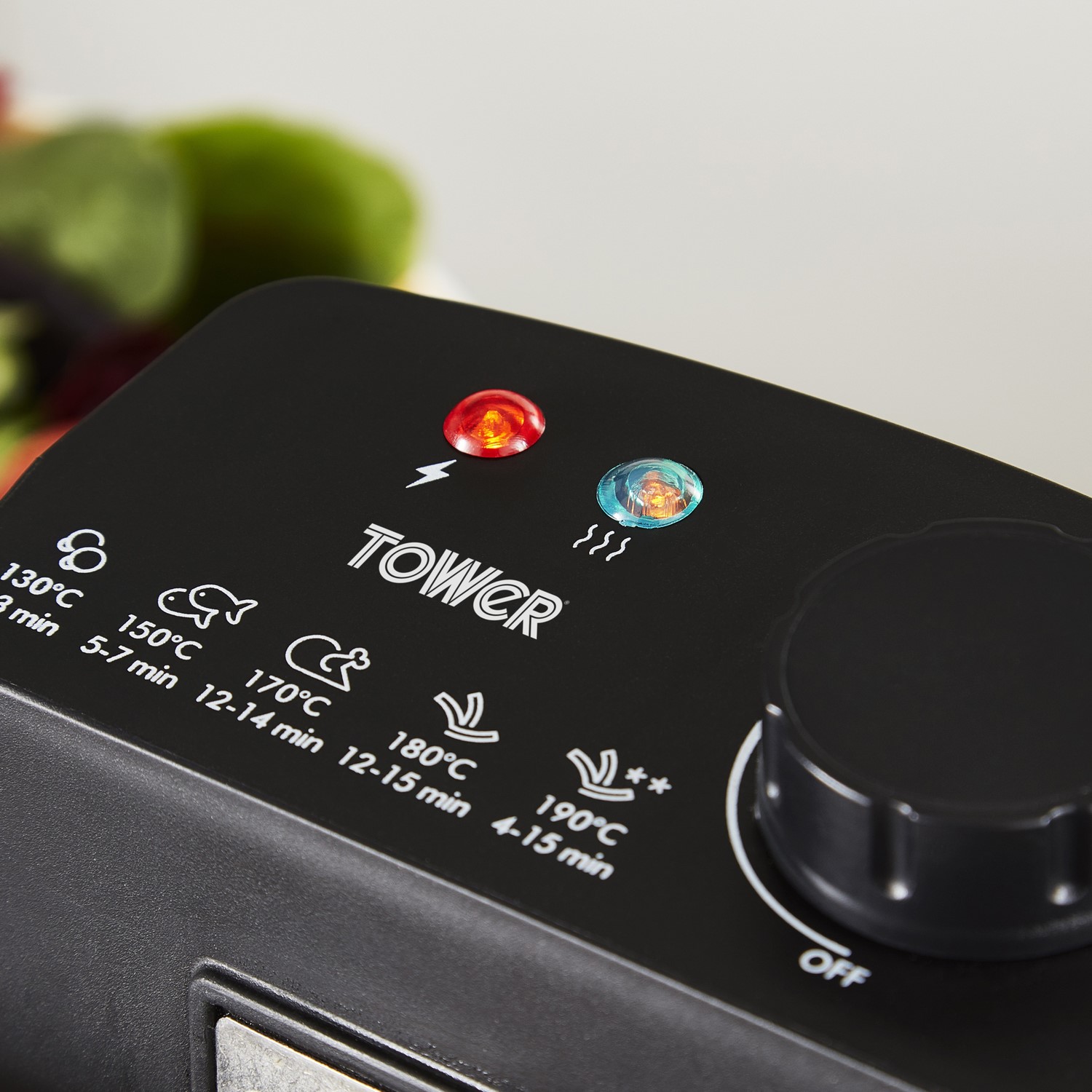 - Power on and ready to cook indicator lights