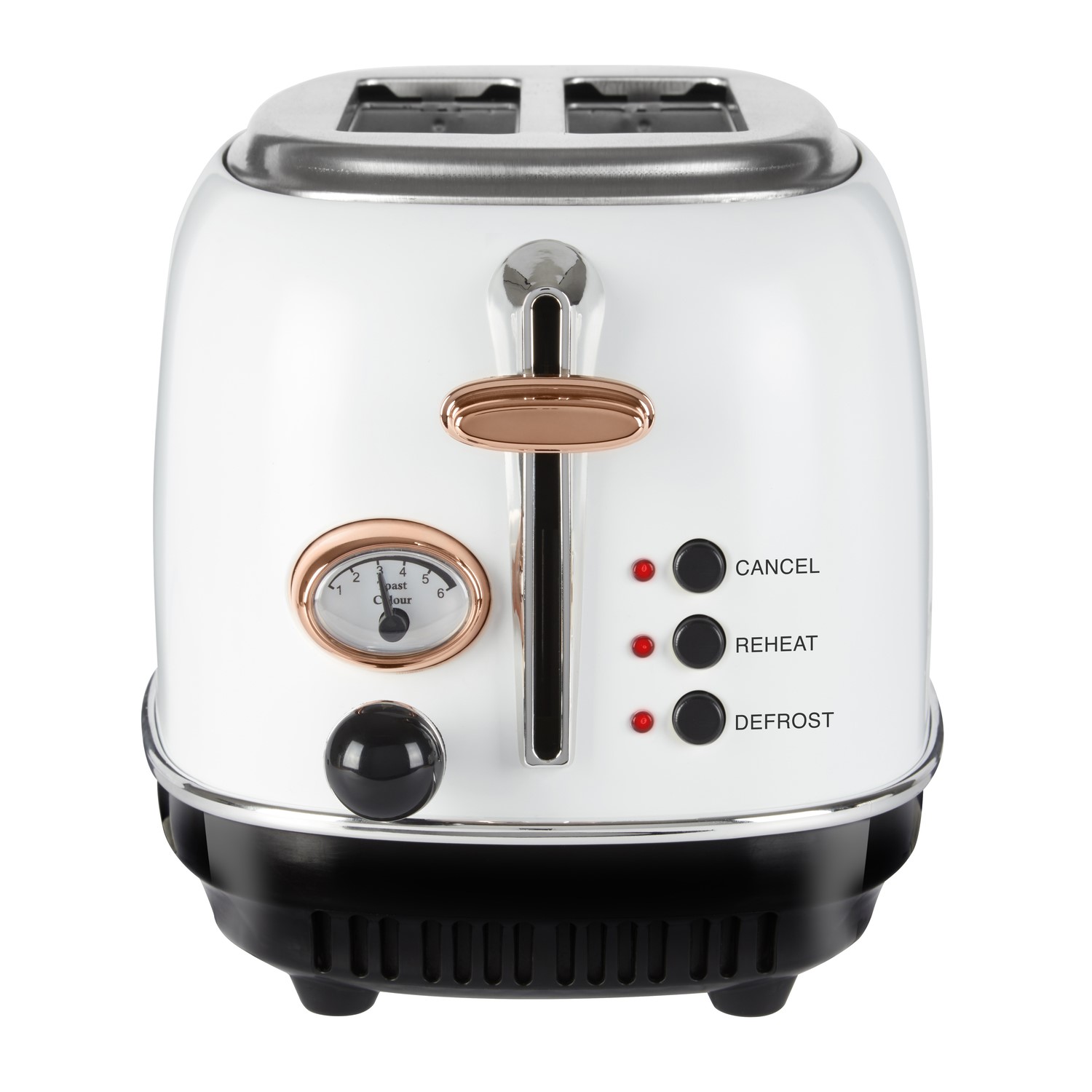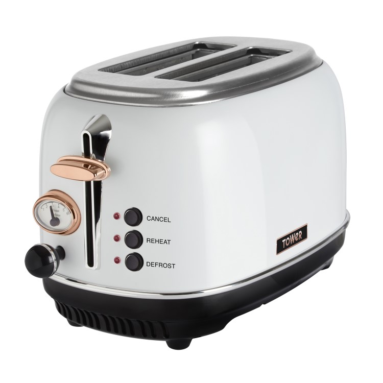 Make your breakfast routine more convenient with this stylish 2 slice Toaster. Variable browning control lets you toast your bread to your liking, whilst the self-centring function produces evenly toasted results every time. Defrost, reheat and cancel buttons let you toast frozen snacks, warm up snacks and stop the toasting cycle midway through for ultimate ease and convenience, while a removable crumb tray and integrated cord storage let you keep your worktop tidy.