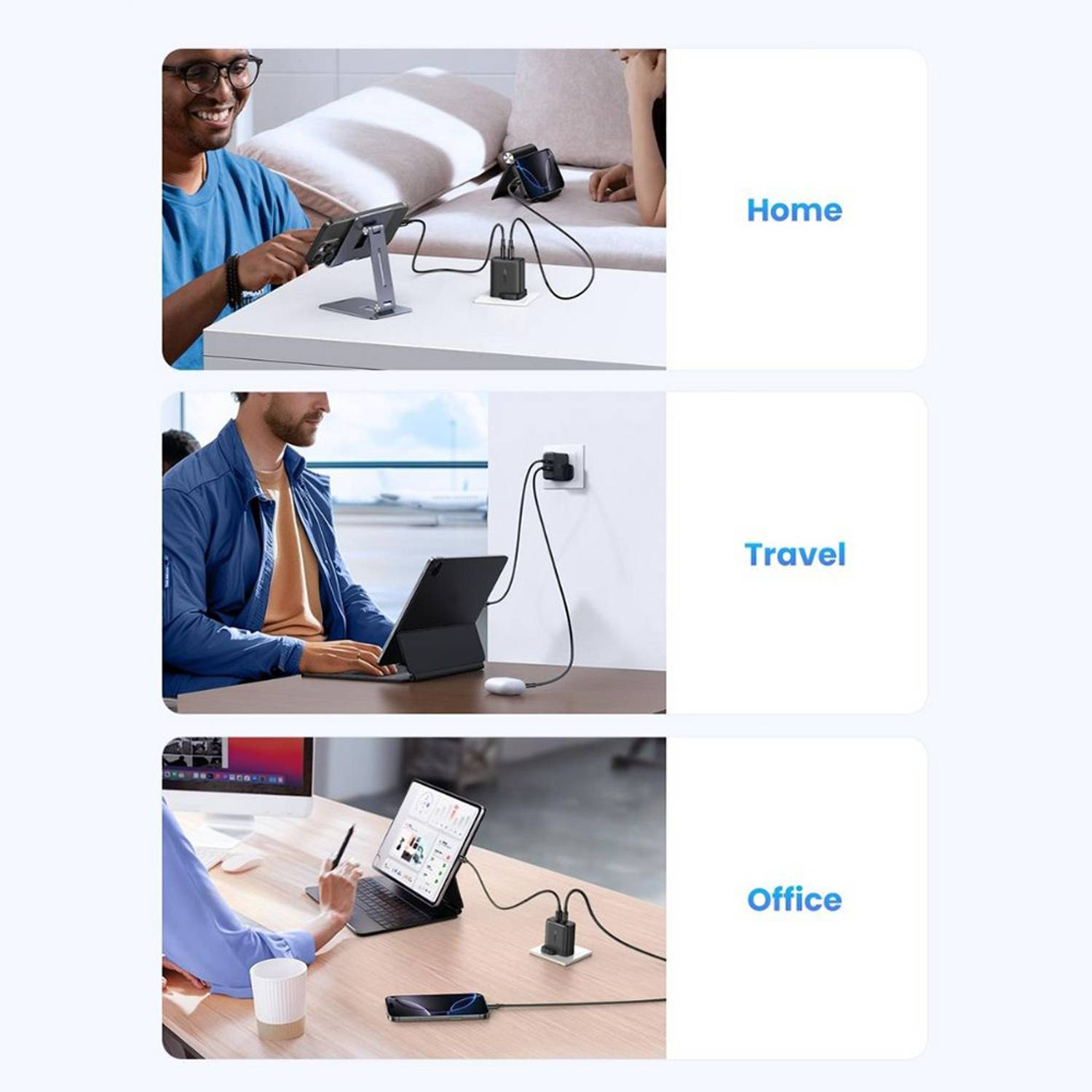 Designed with portability in mind, this lightweight and compact charger fits easily in your bag, making it ideal for travel, home, or office use.