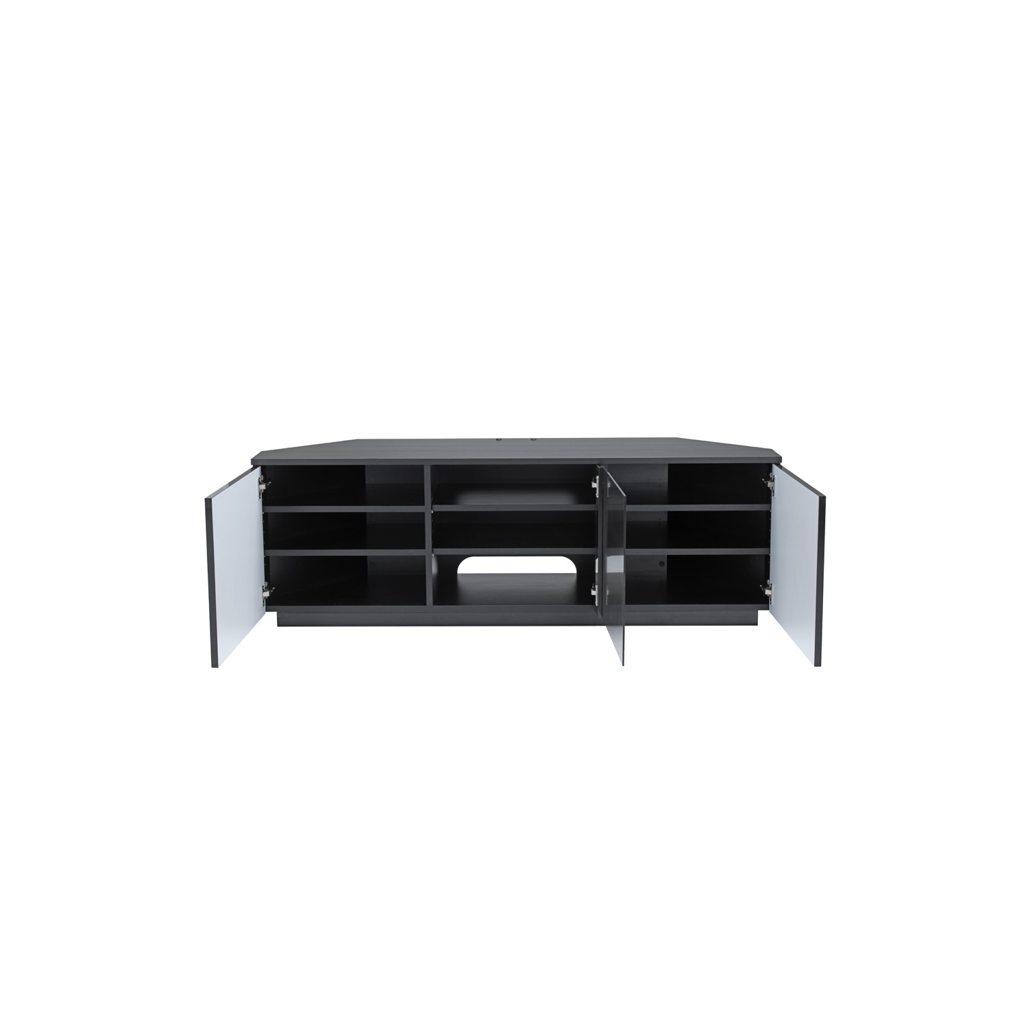 Following on from the success of UKCF City scape Milan, New Milan is our brand new 1500mm Corner AV cabinet for 2016. Available in 4 new finishes, New Milan offers chic contemporary design with colour options for all interiors. The main cabinet is available in three wood grain finishes, Oak, Walnut and black, all manufactured from high quality 18mm wood grain MFC throughout the cabinet. There is one central glass door with quality soft close hinges. This door features remote control friendly dark glass allowing you to control your AV equipment without the need to open the door.