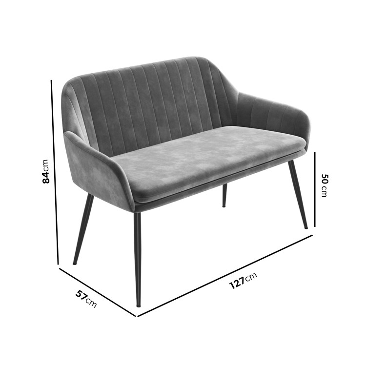- Comes with 2 grey velvet tub chairs and 1 dining bench with back