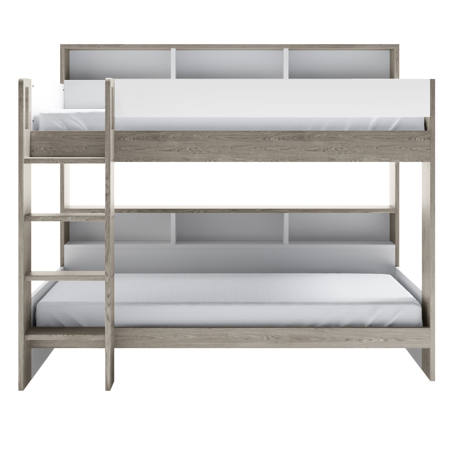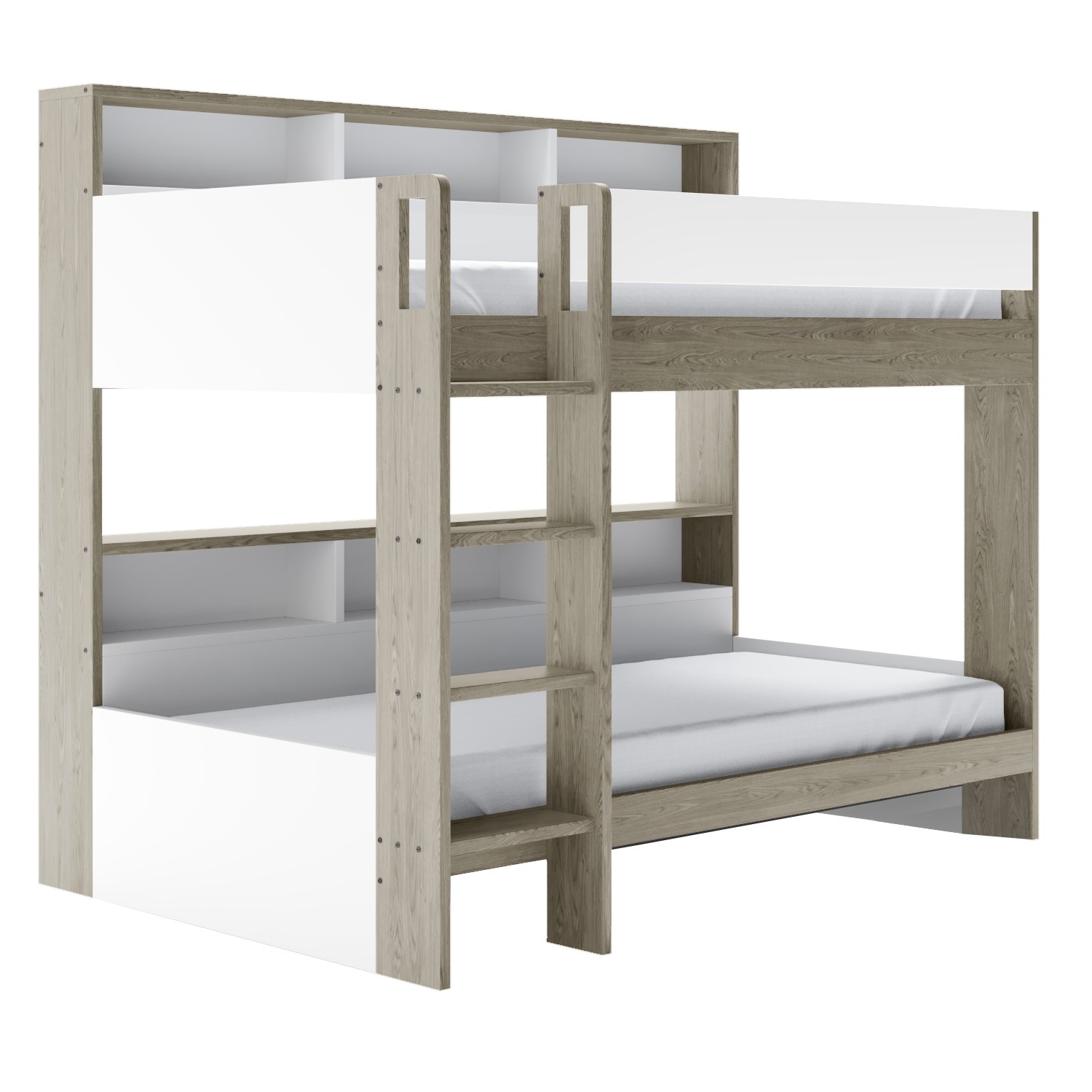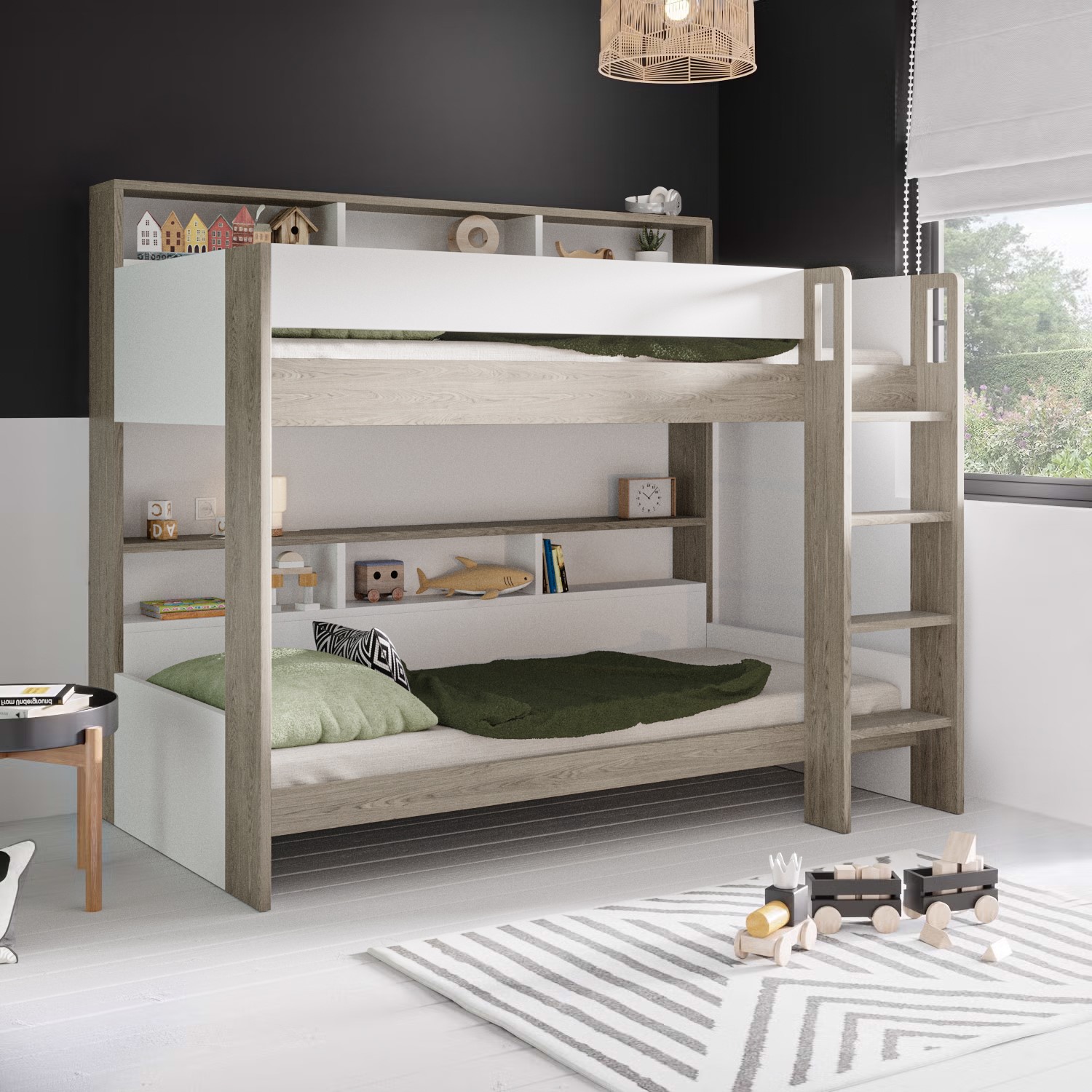 The Aire wooden bunk bed is a fun, modern addition to any children's bedroom. With seven built-in shelves for toys, books and extra storage space underneath, it’s perfect for keeping the room tidy while saving on floor space. The ladder can be fitted on either side during assembly, offering flexibility to suit your room layout.
