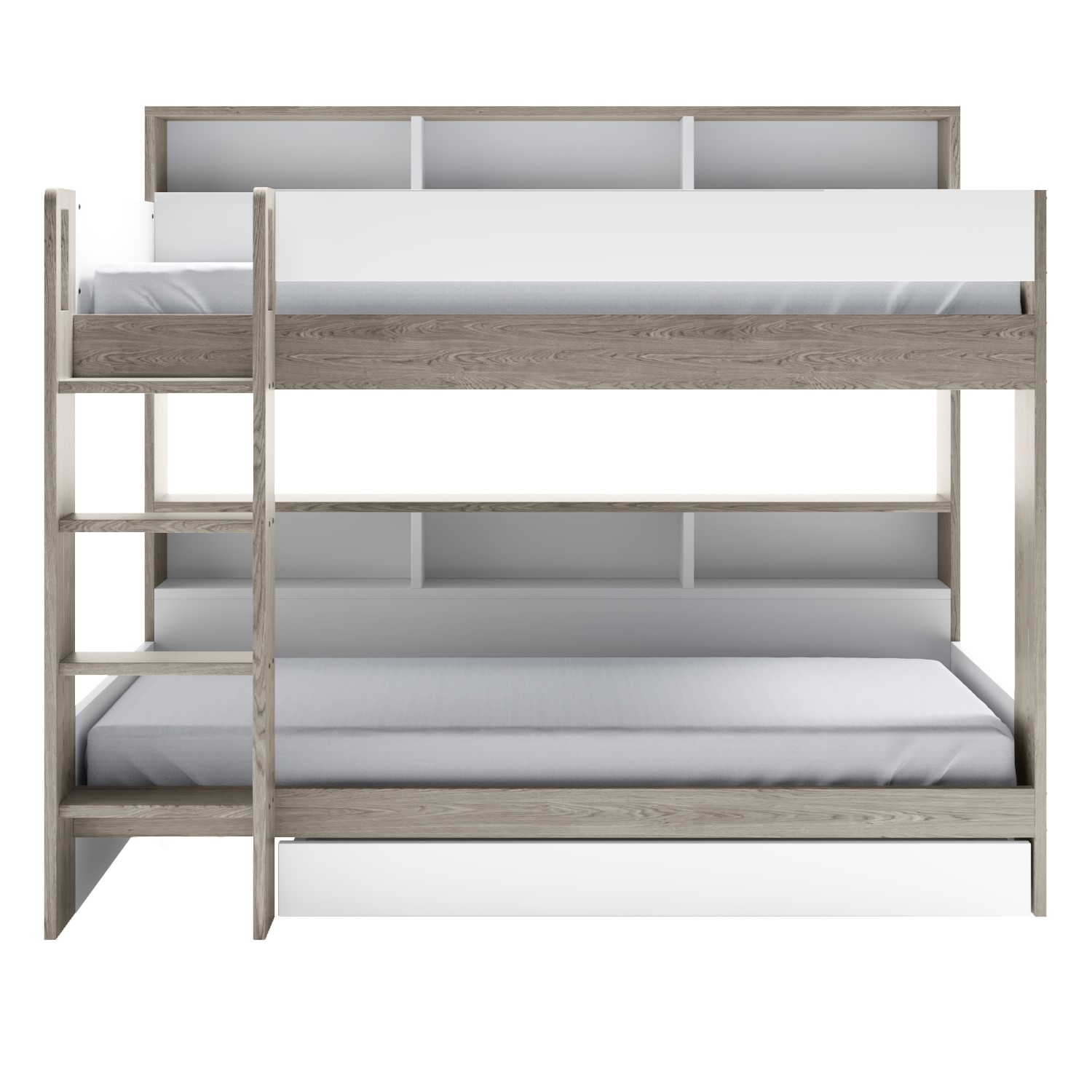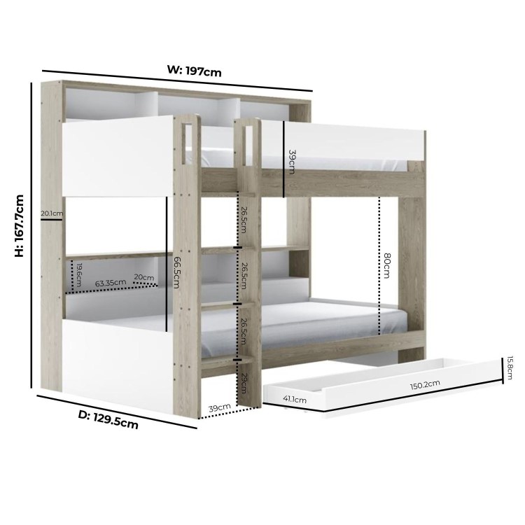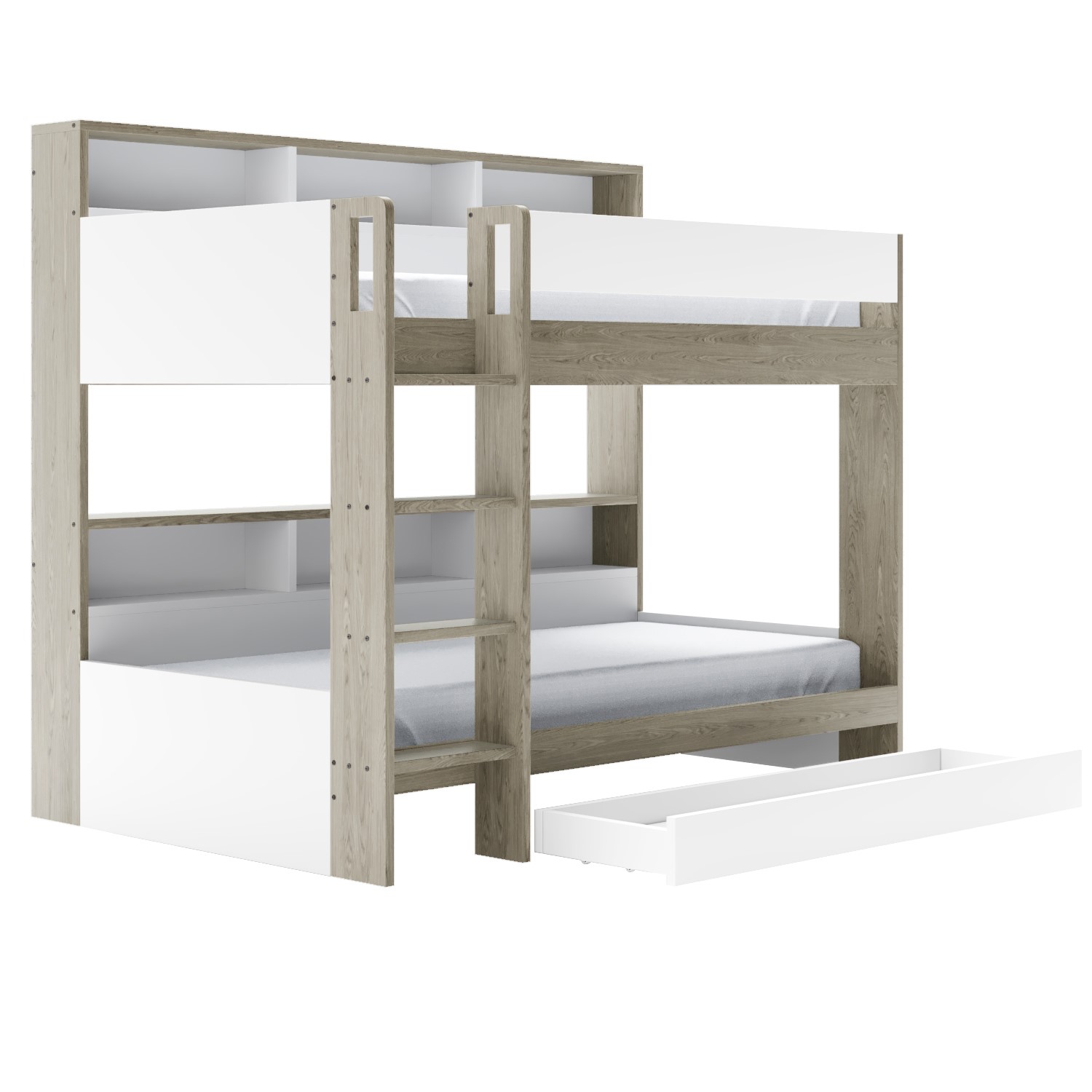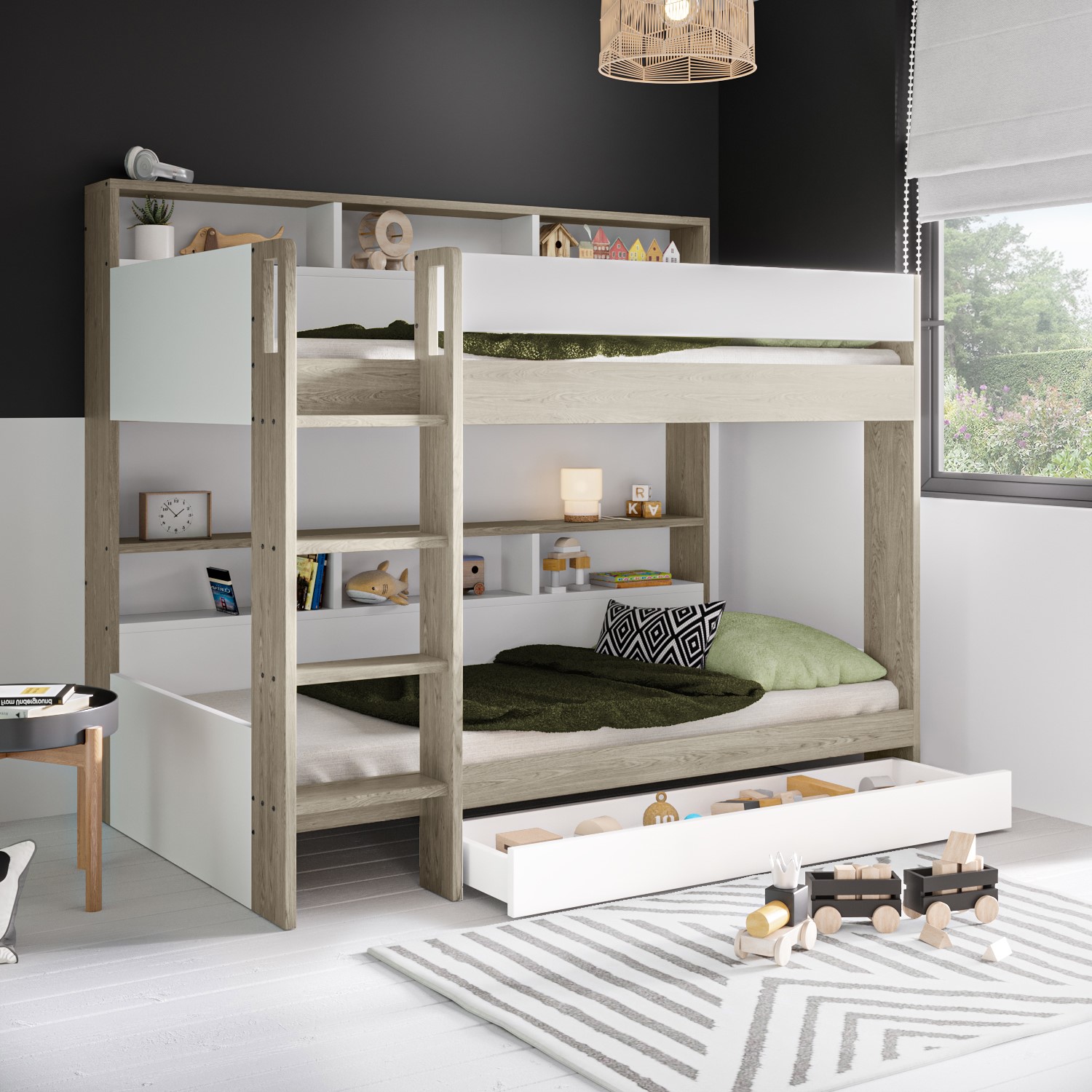 The Aire wooden bunk bed is a fun, modern addition to any children's bedroom. With seven built-in shelves for toys, books and extra storage space underneath, it’s perfect for keeping the room tidy while saving on floor space. The ladder can be fitted on either side during assembly, offering flexibility to suit your room layout.