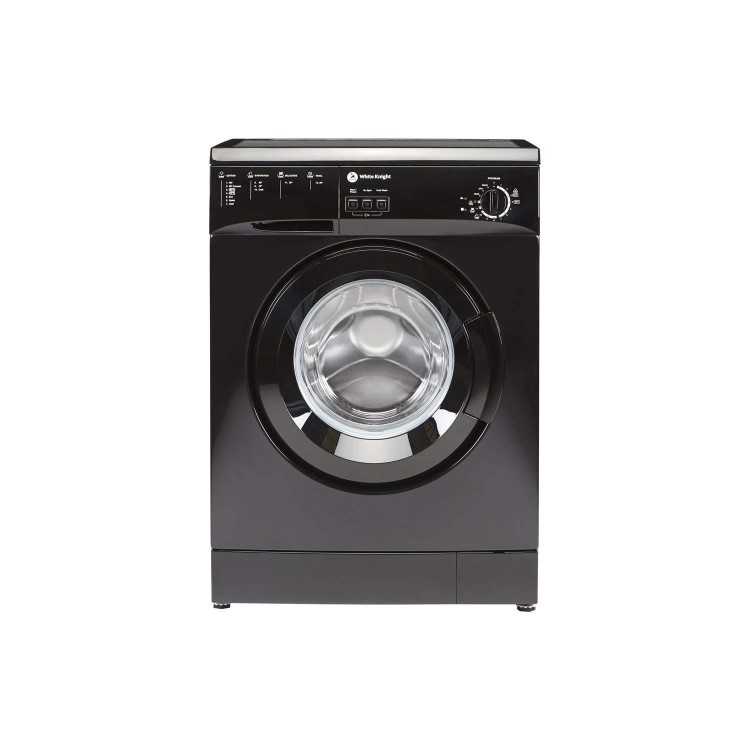 Looking for a simple and easy to use washing machine that isn’t a mind field when it comes to features and buttons? This freestanding White Knight washing machine in shiny black may be the no mess, no fuss answer to your prayers. The compact design has a 5kg drum capacity, which is perfect for individuals, couples and small families, washing 25 T-shirts at once and easily handling bulkier items such as towels and sheets.
