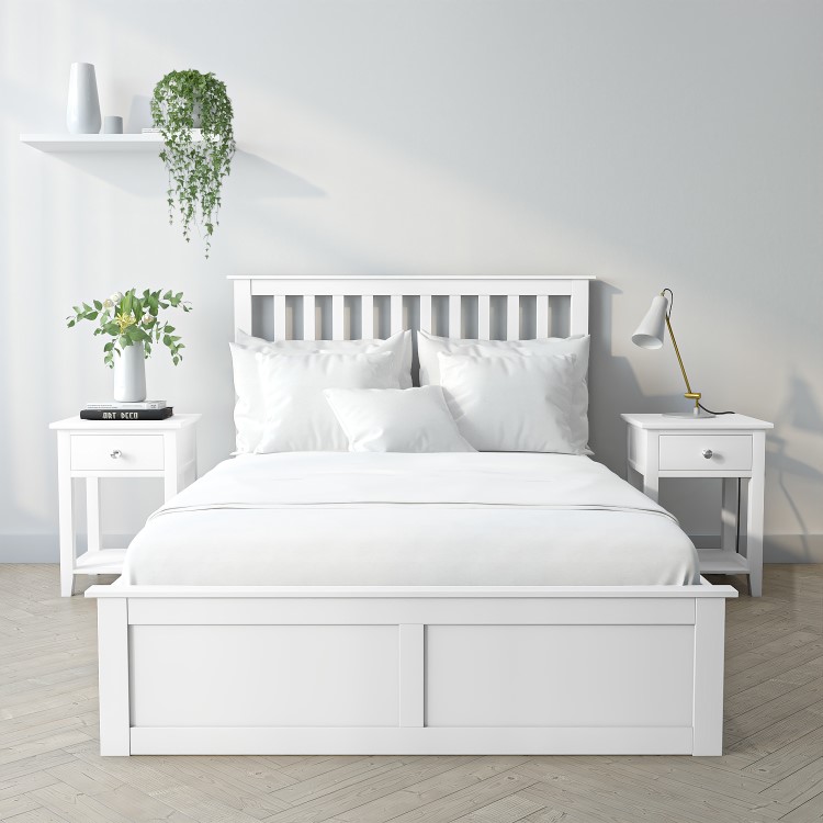 Utilise the space in your bedroom to the fullest with this white painted wooden bed. In a small double size that will save you space, this bed also has a hidden storage compartment underneath. Accessed by lifting up the base and mattress, the gas-lift mechanism makes the compartment easy to get to. The white painted finish will suit any home interior and create a light a fresh feel for your room.