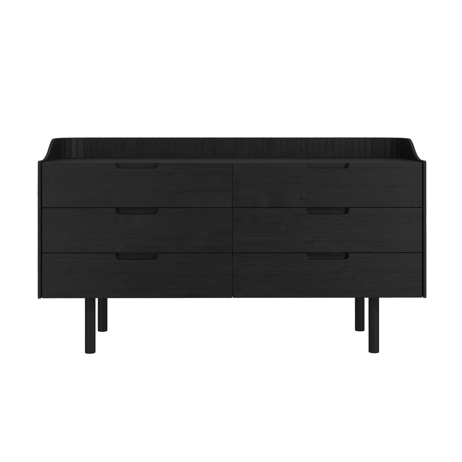Add a splash of Scandi-inspired retro to your room with the Saskia chest of drawers. It’s perfect for storing your folded clothes and other essentials and the drawers feature metal runners for a smooth opening. The stunning blackened wood is lacquered and features a ribbed collar for a retro finish.